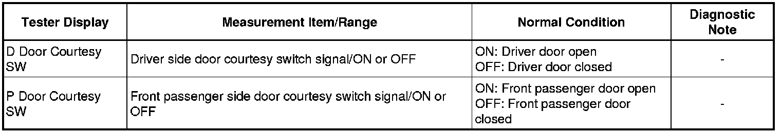 3. READ VALUE USING TECHSTREAM (DOOR COURTESY SWITCH)