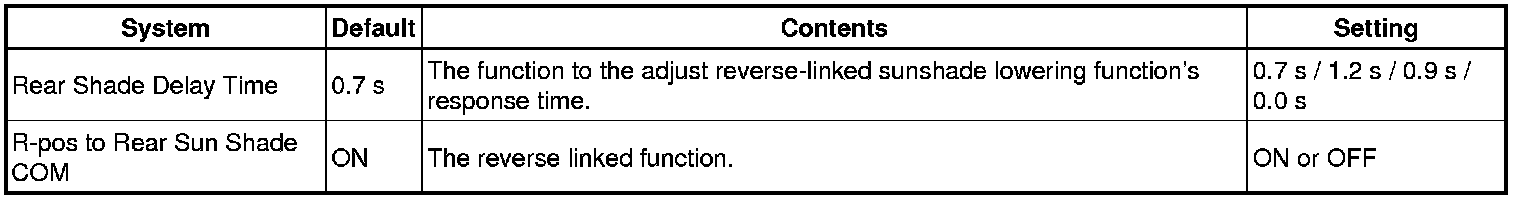 INTERIOR: REAR SUNSHADE SYSTEM: CUSTOMIZE PARAMETERS