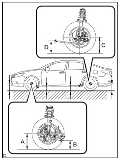- Before inspecting the wheel alignment, adjust the vehicle height to the specified value.