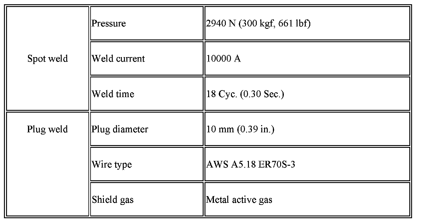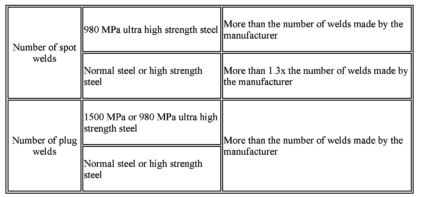 a. Follow the welding conditions below when welding ultra high strength steel to assure sufficient weld strength.