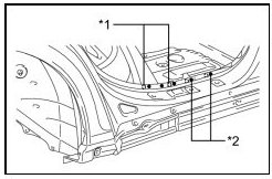 NOTICE: Inspect the welds after spot welding. For points with insufficient weld strength join the panels using plug welds.