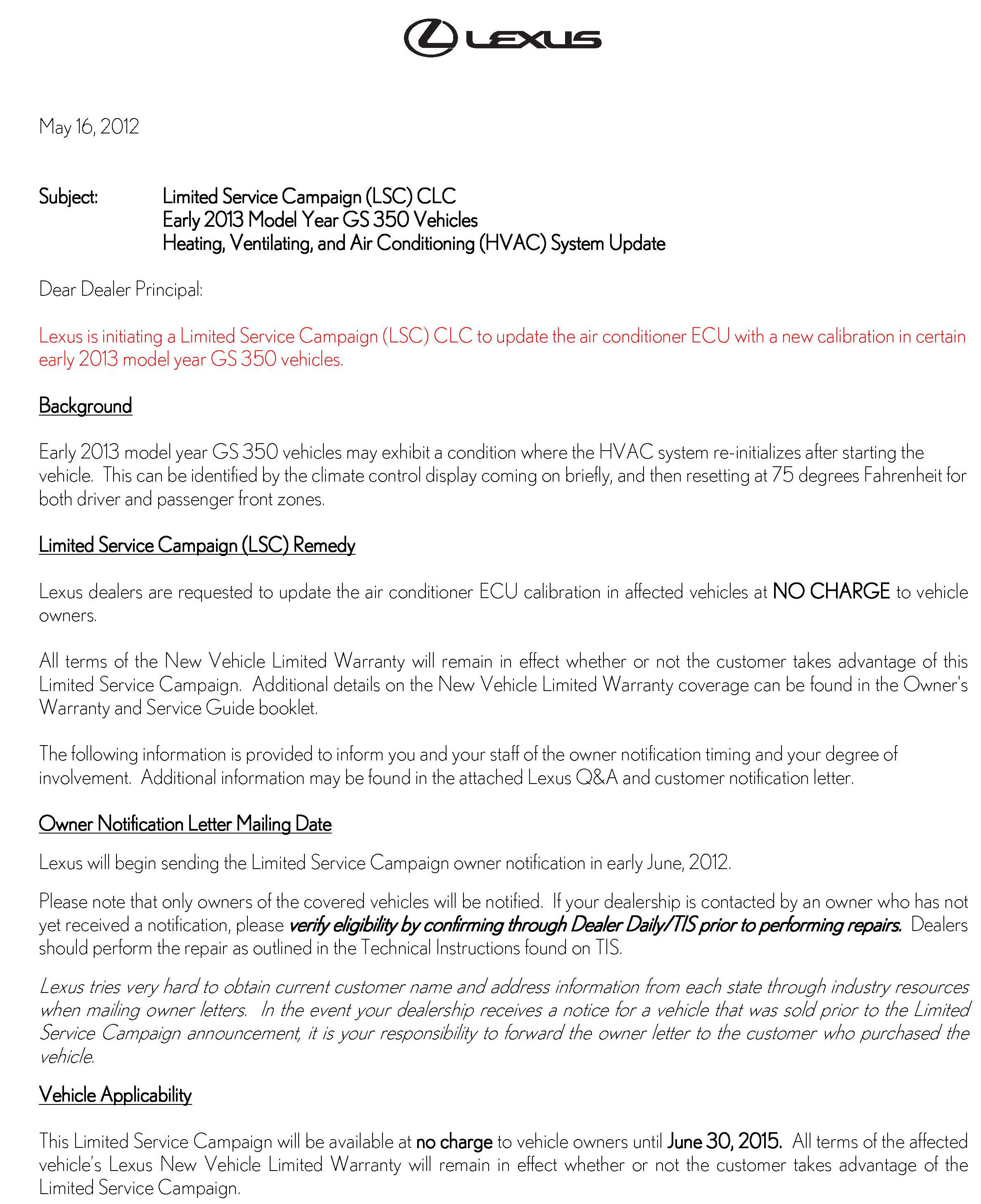 Dealer Letter