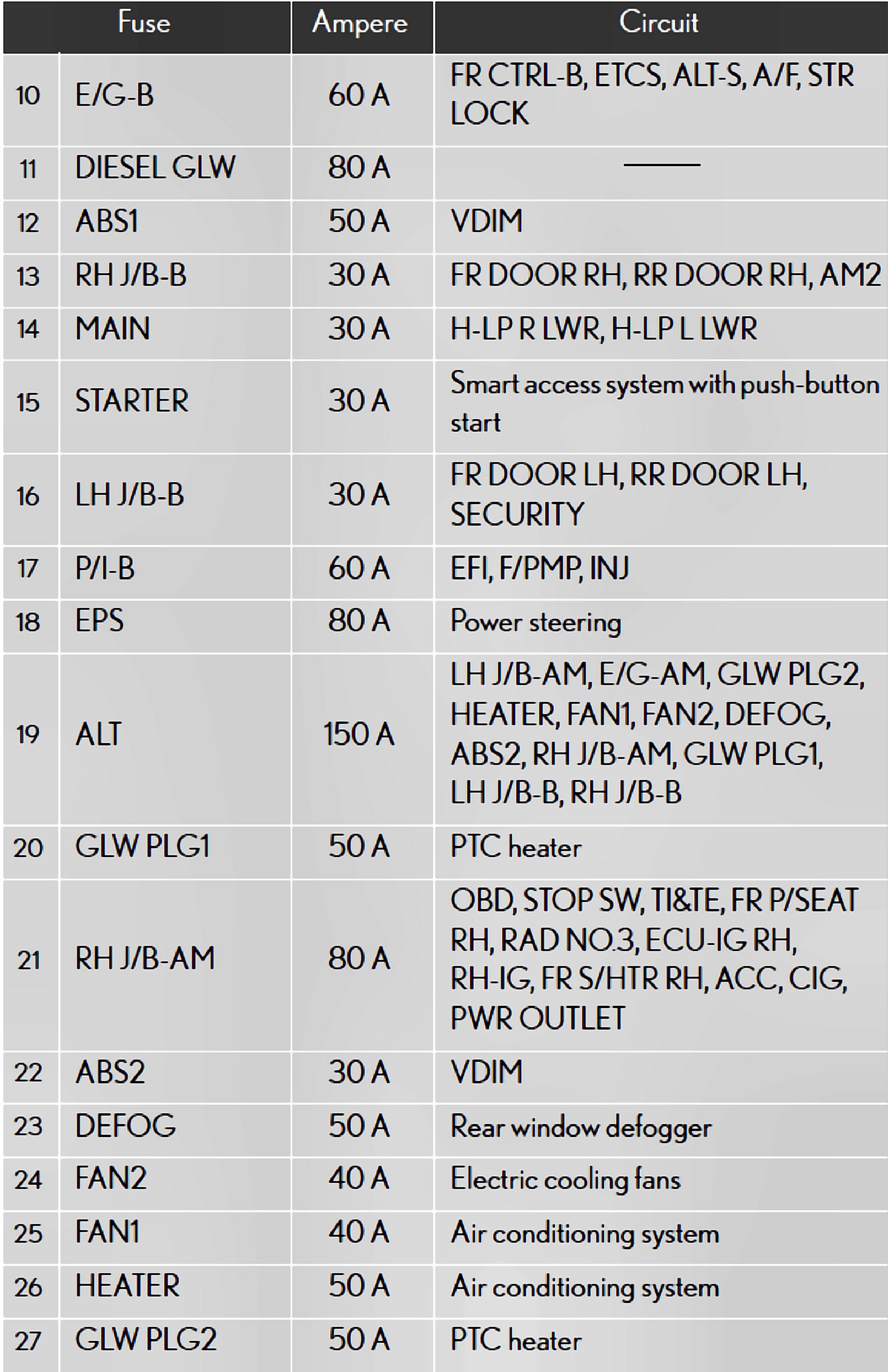 Fuses 10-27:
