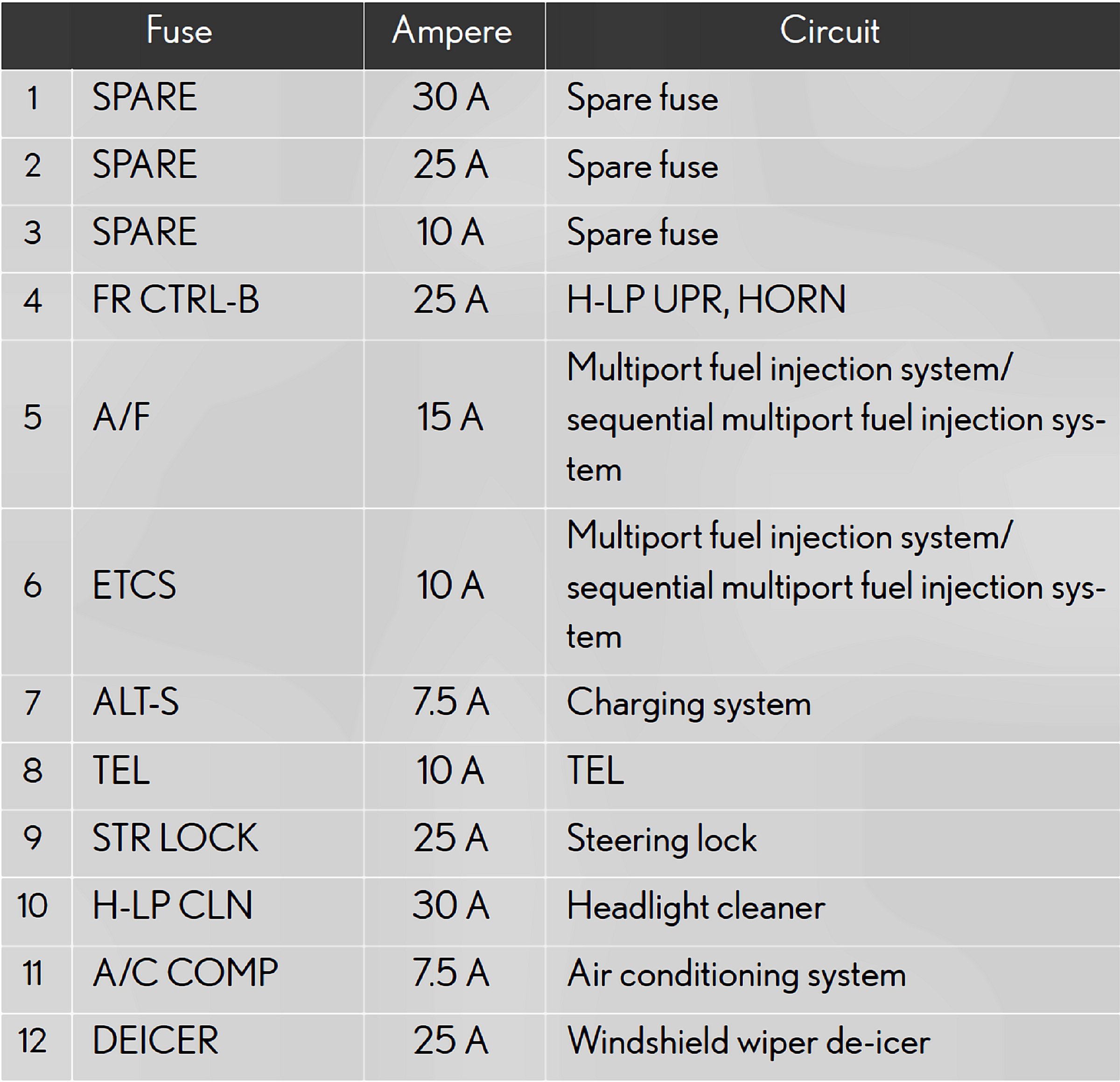 Fuses 1-12: