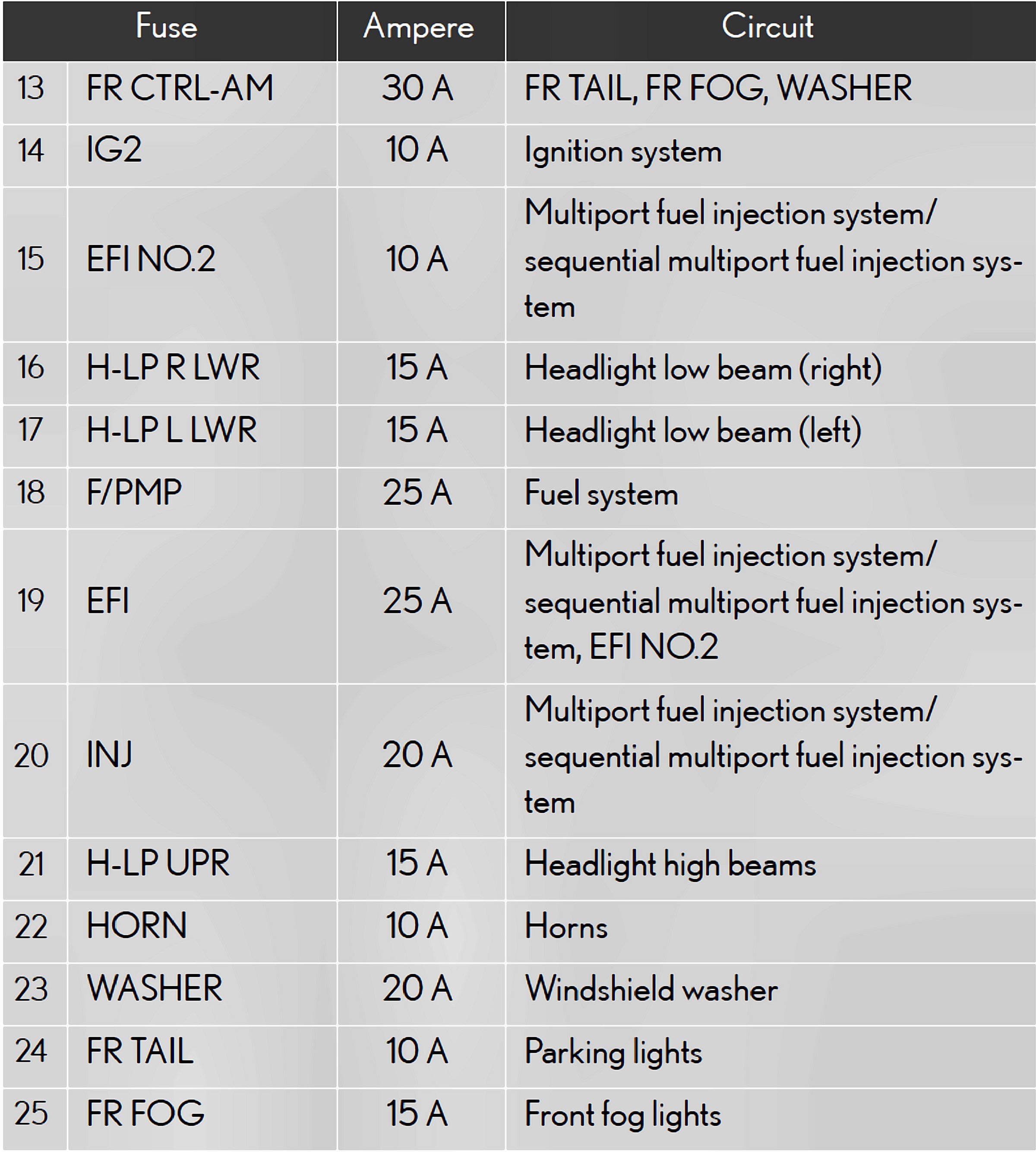 Fuses 13-25: