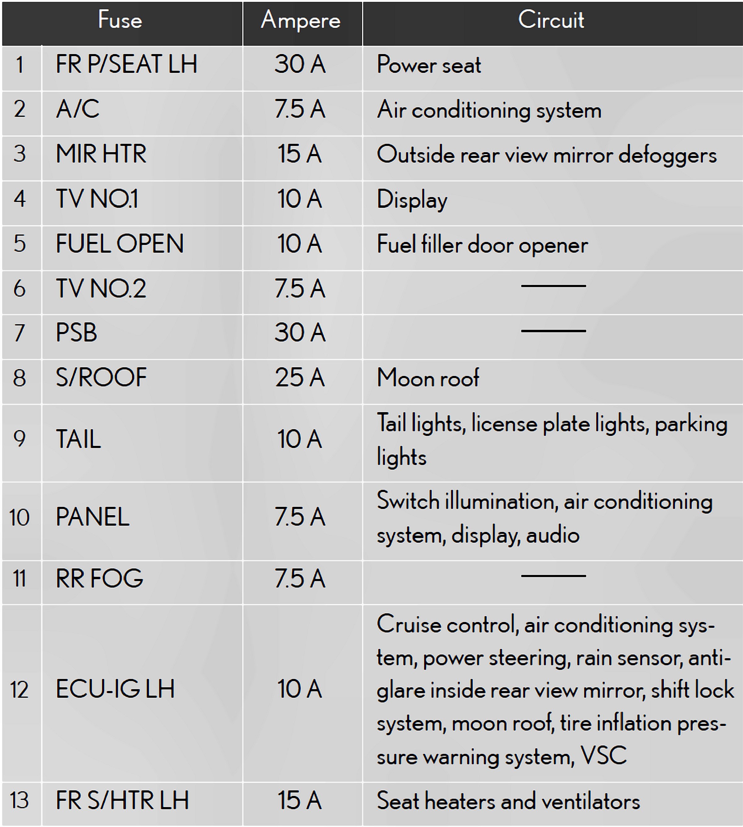 Fuses 1-13: