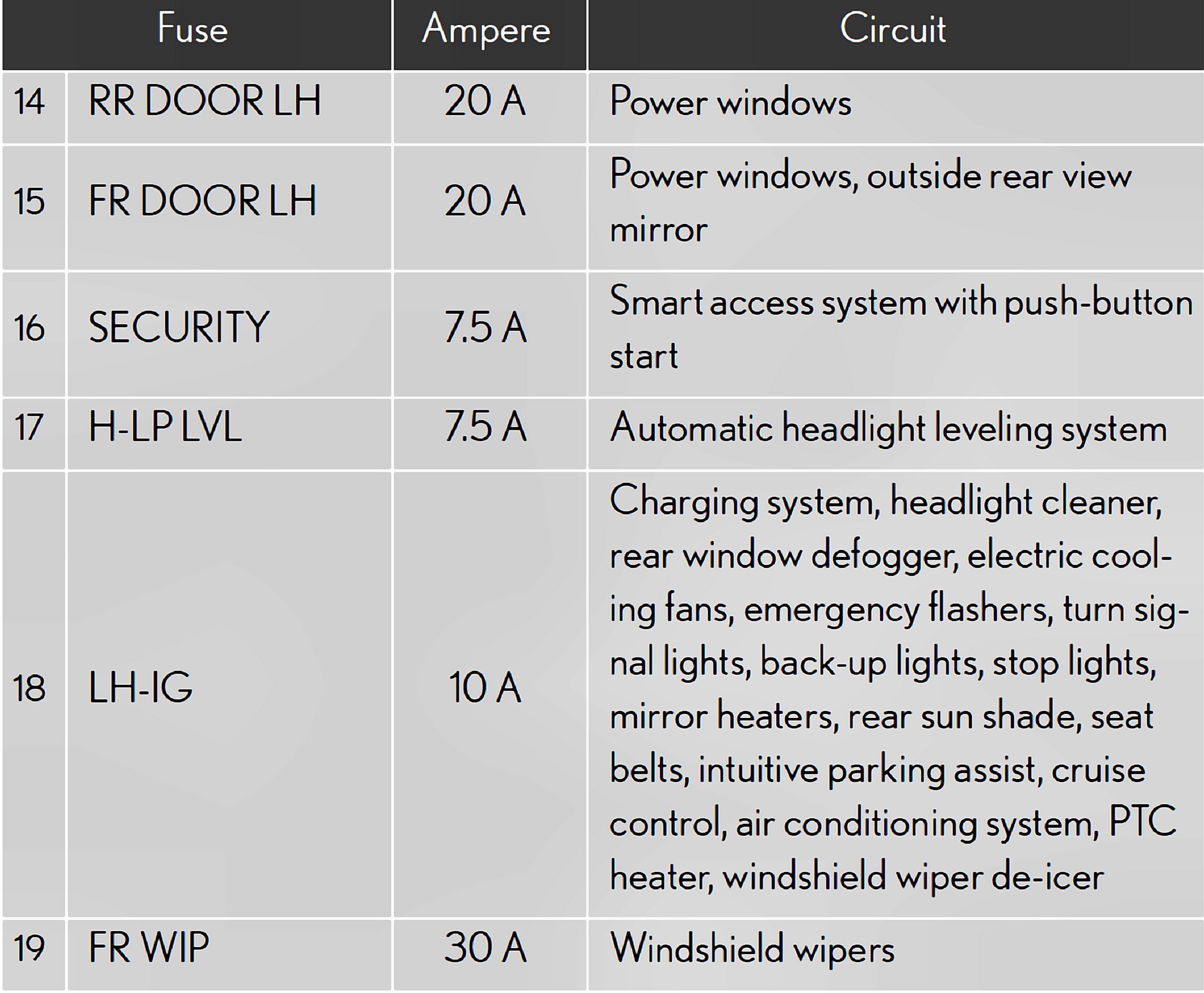 Fuses 13-19:
