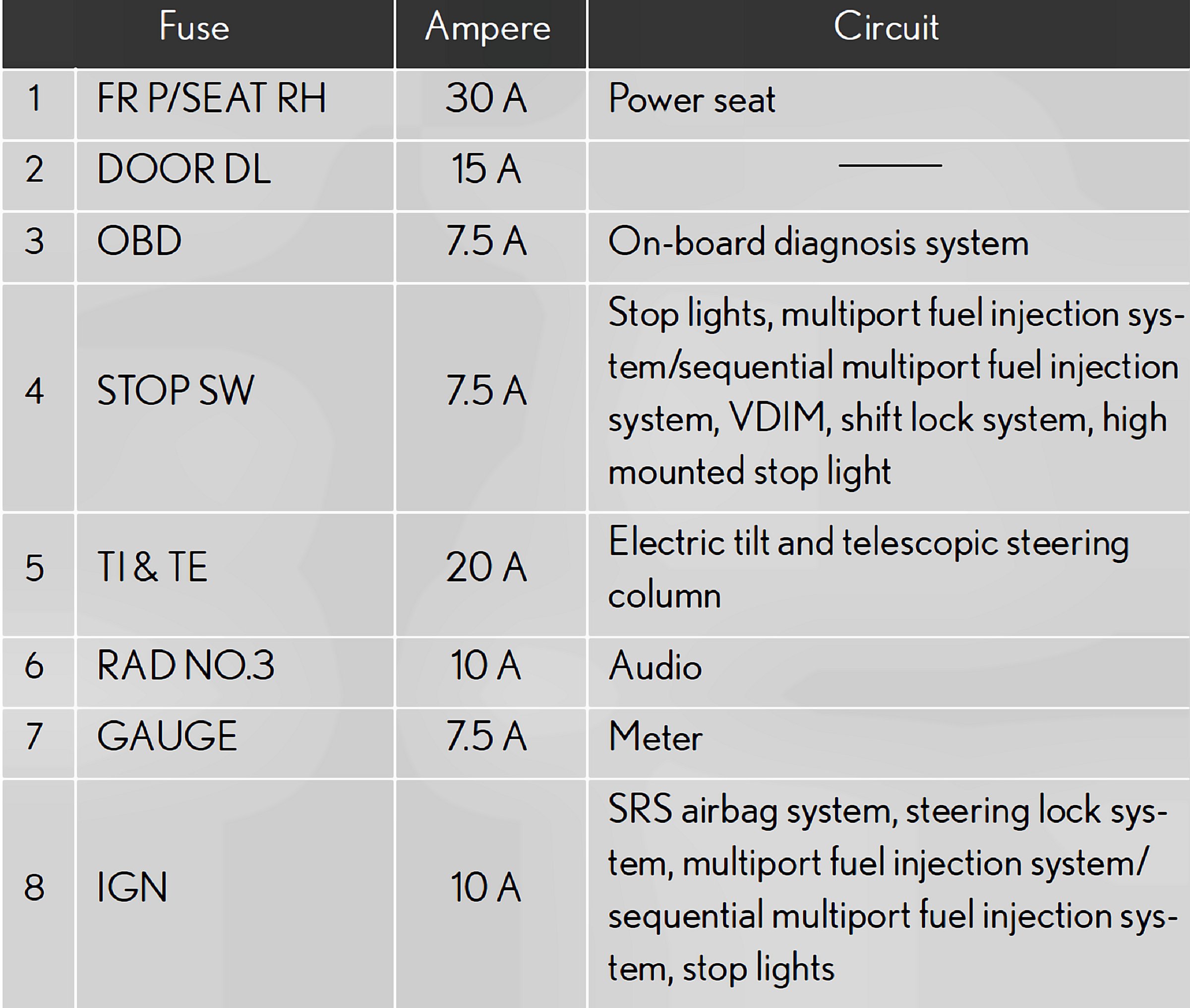 Fuses 1-8: