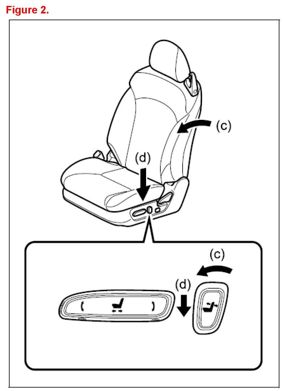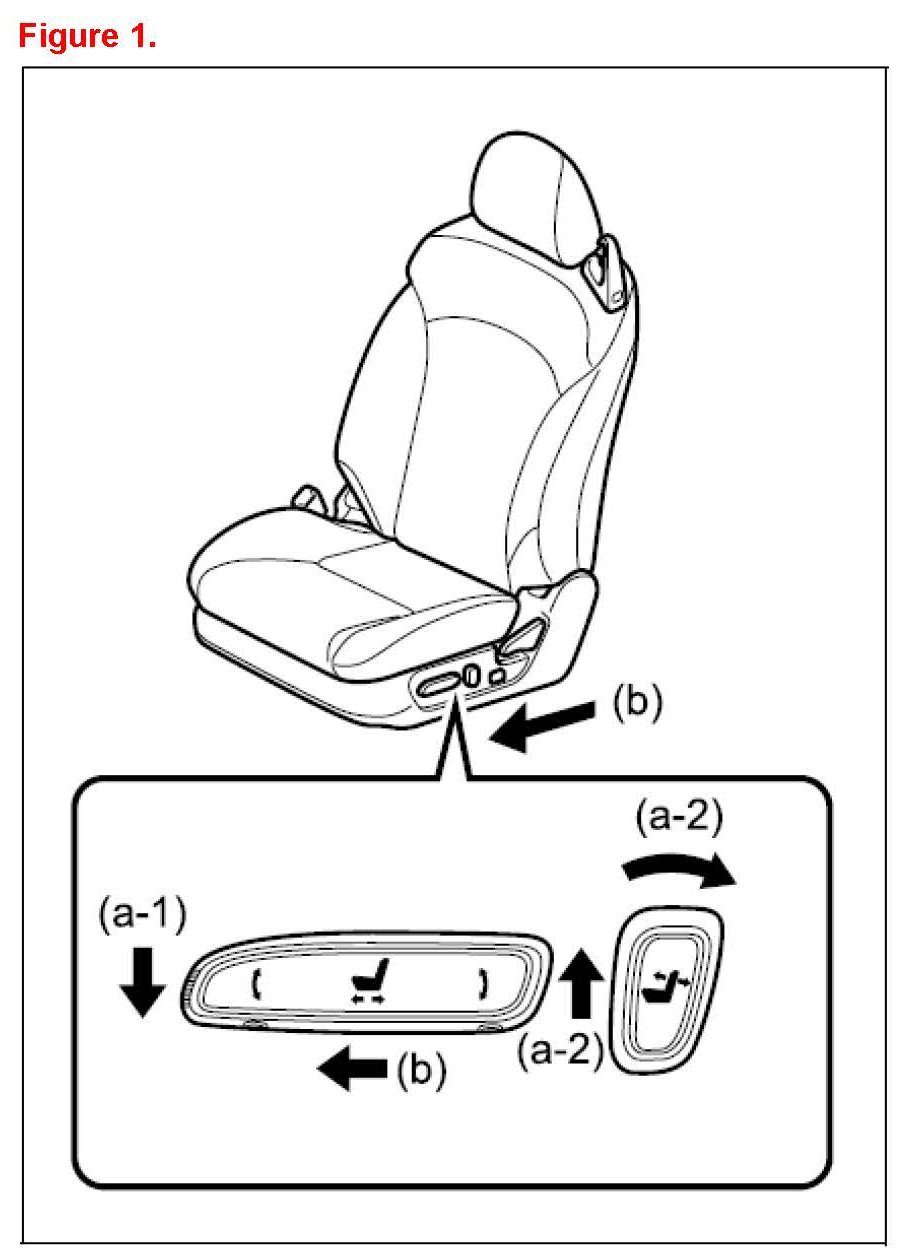 4. Push the seat position control switch forward, sliding the seat to the full forward or most forward position until a beep sound is emitted. Reference (b) in Figure 1.
