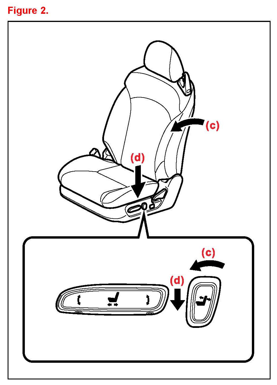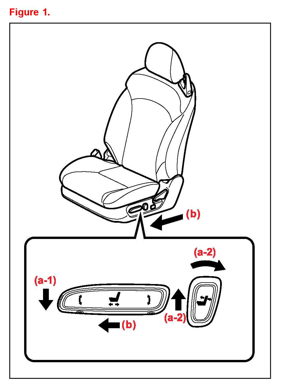 4. Push the seat position control switch forward, sliding the seat to the full forward or most forward position until a beep sound is emitted. Reference (b) in Figure 1.