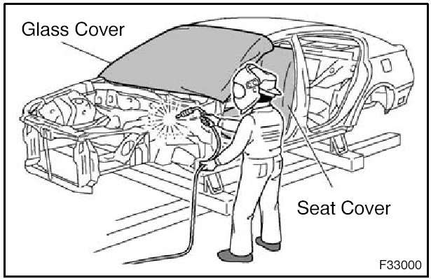 1. When welding, cover glass, seats, carpets, etc. with heat resistant fireproof covers to protect them.
