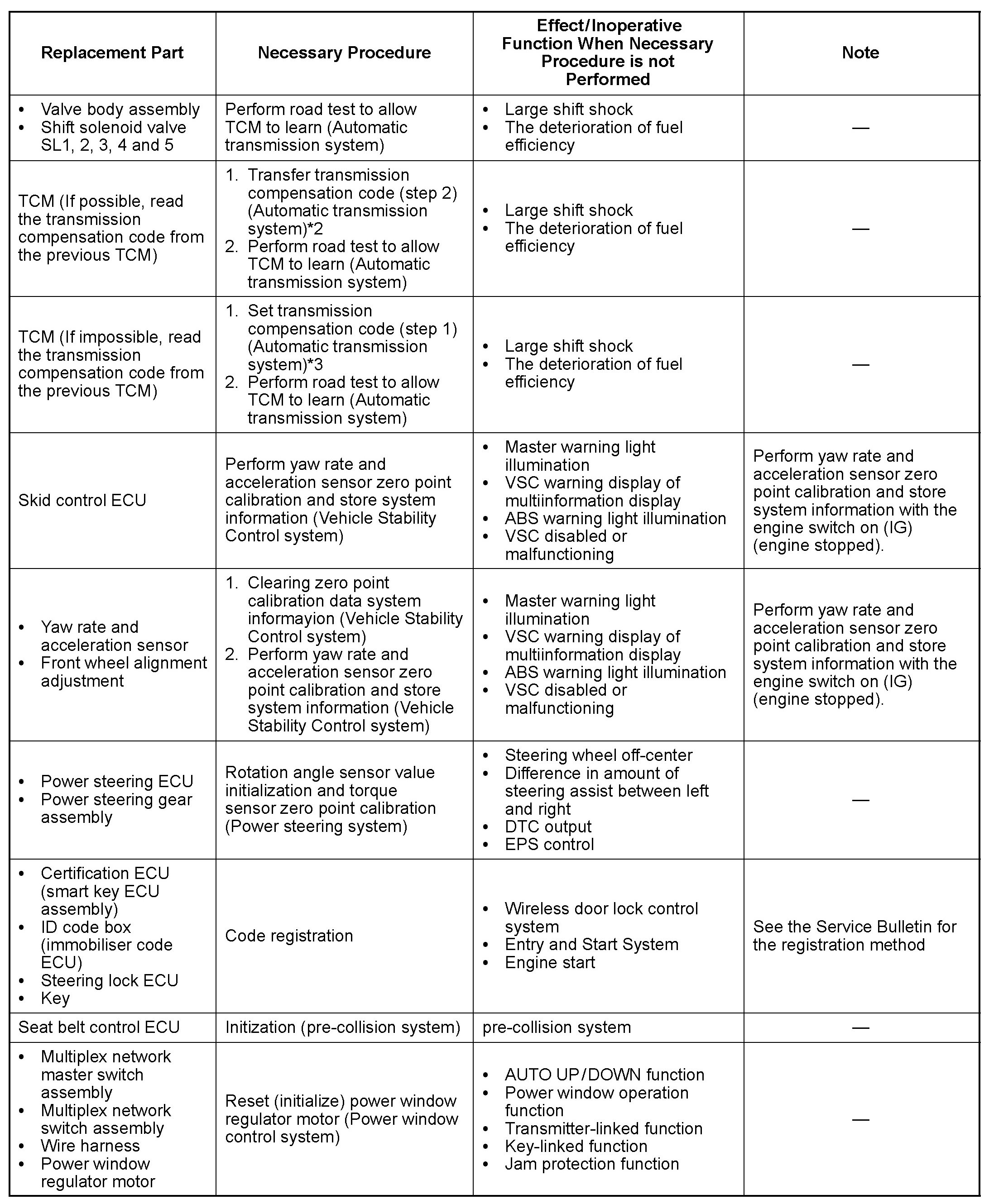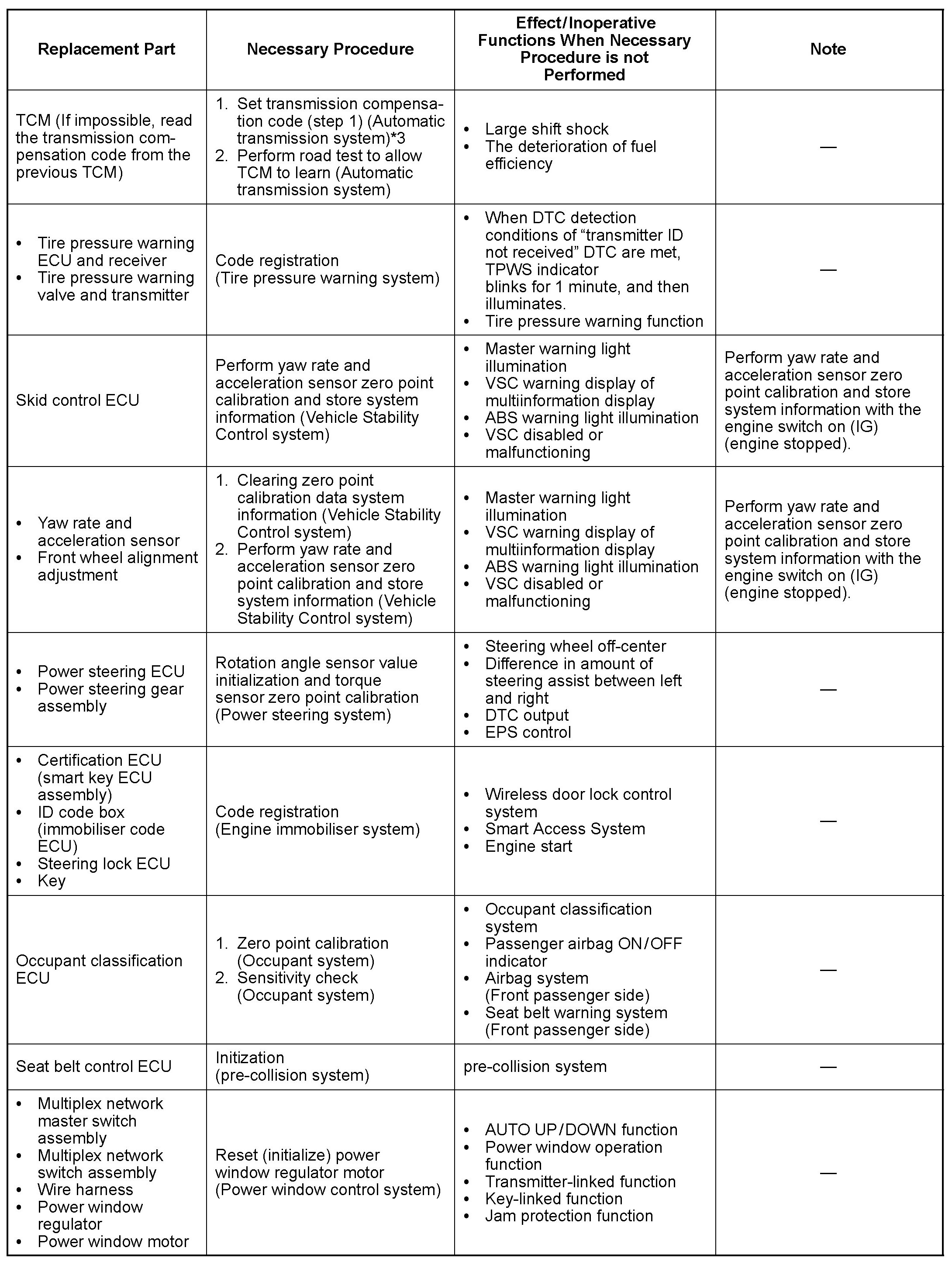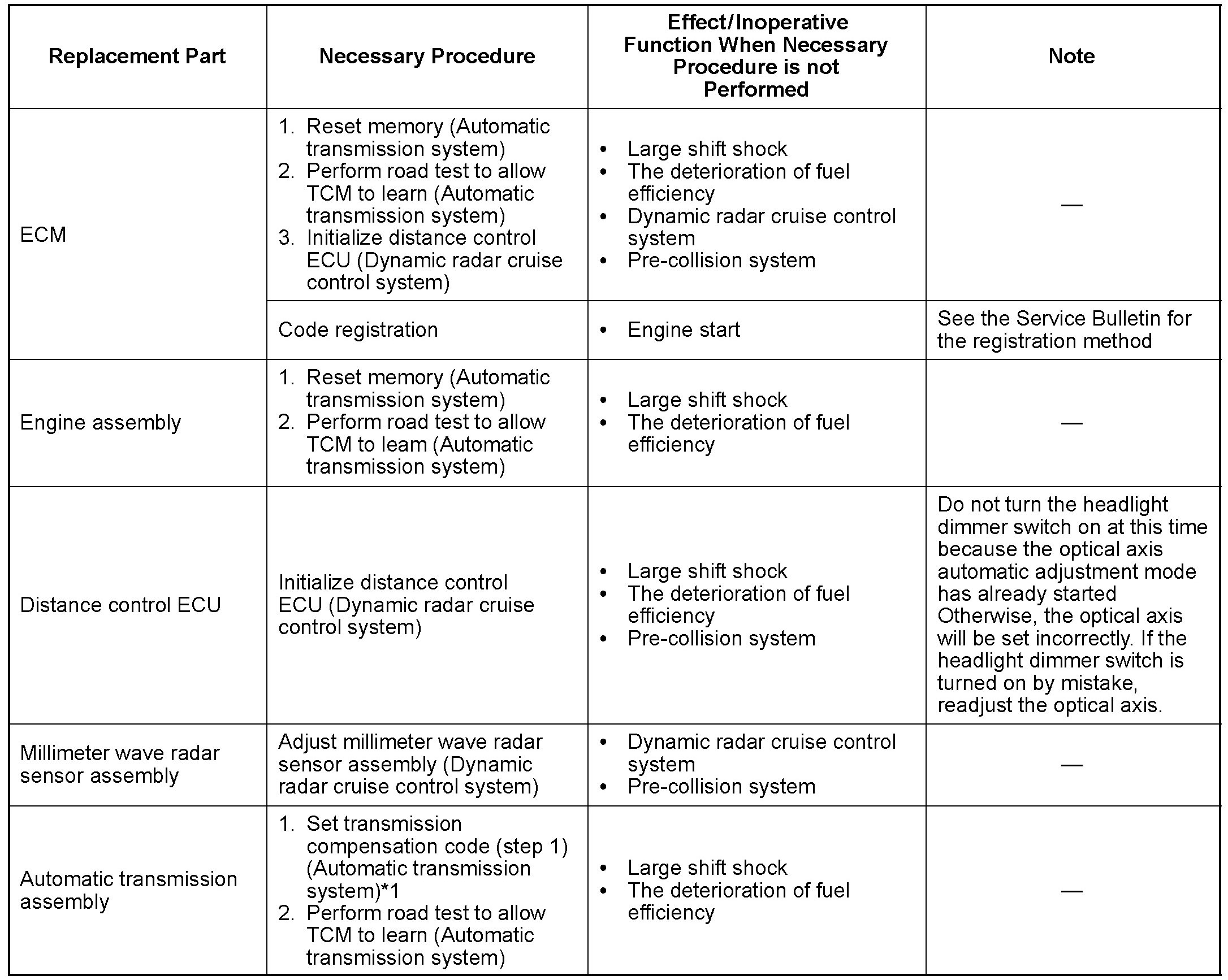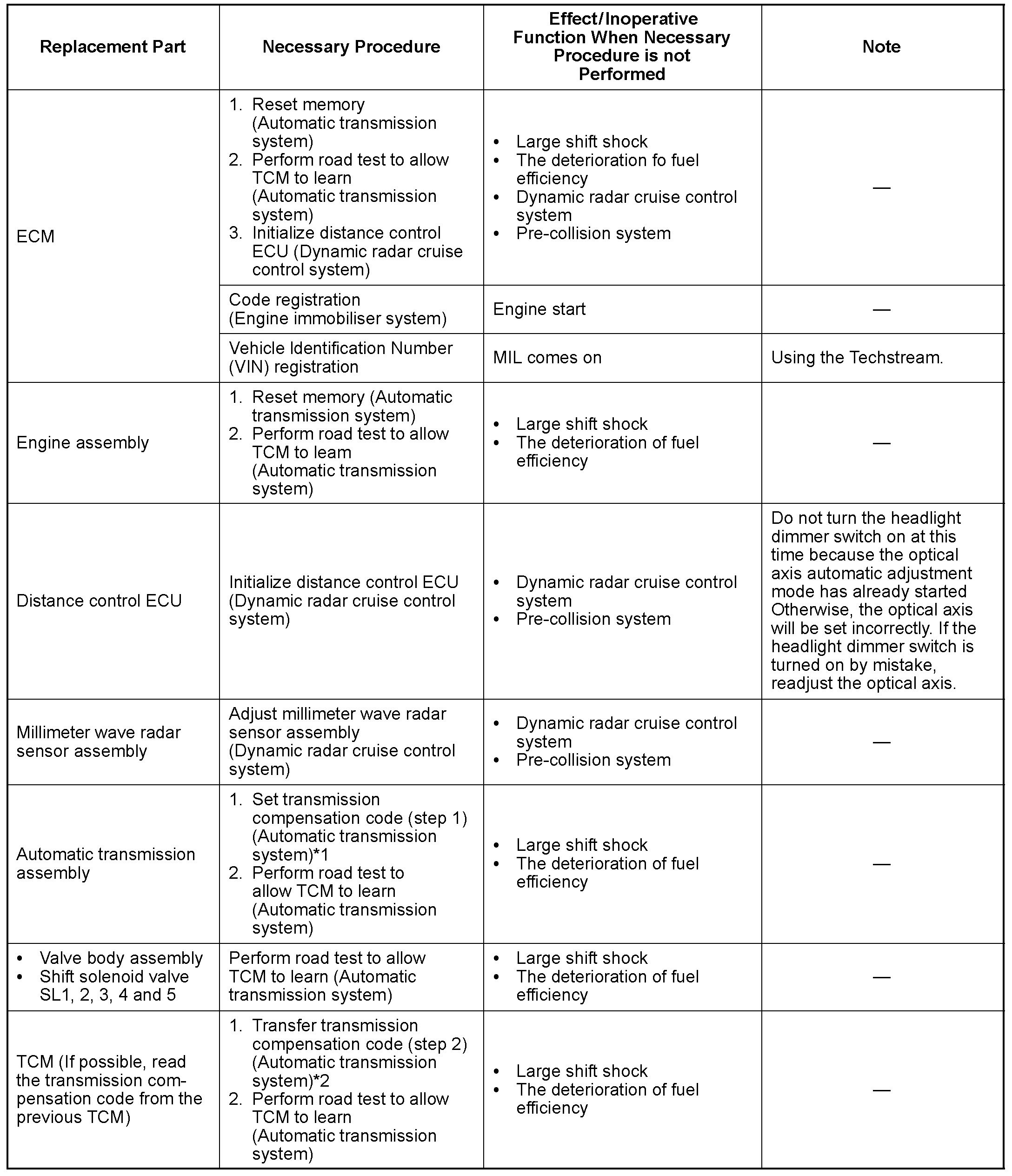 PROCEDURES NECESSARY WHEN ECU OR OTHER PARTS ARE REPLACED