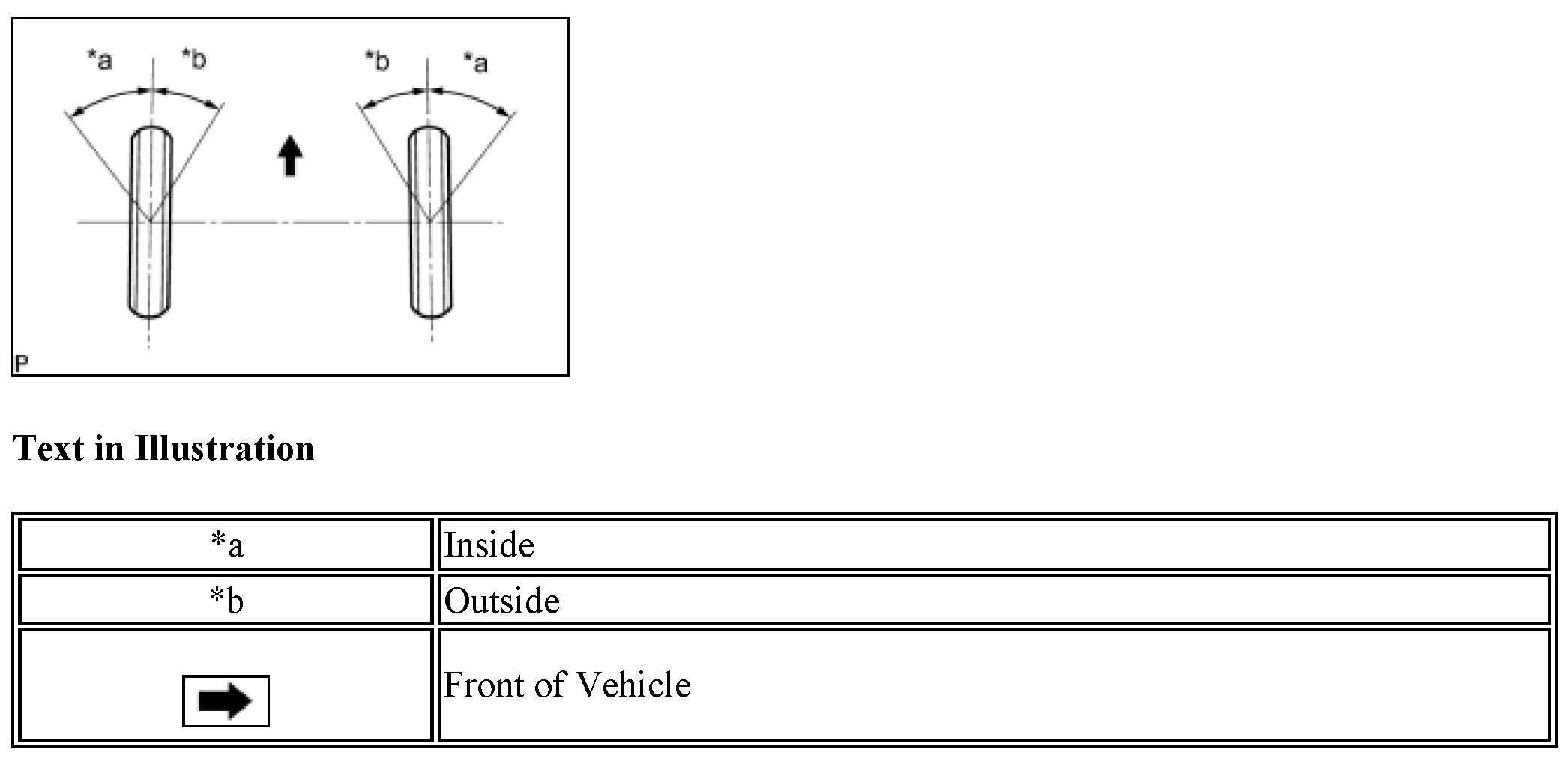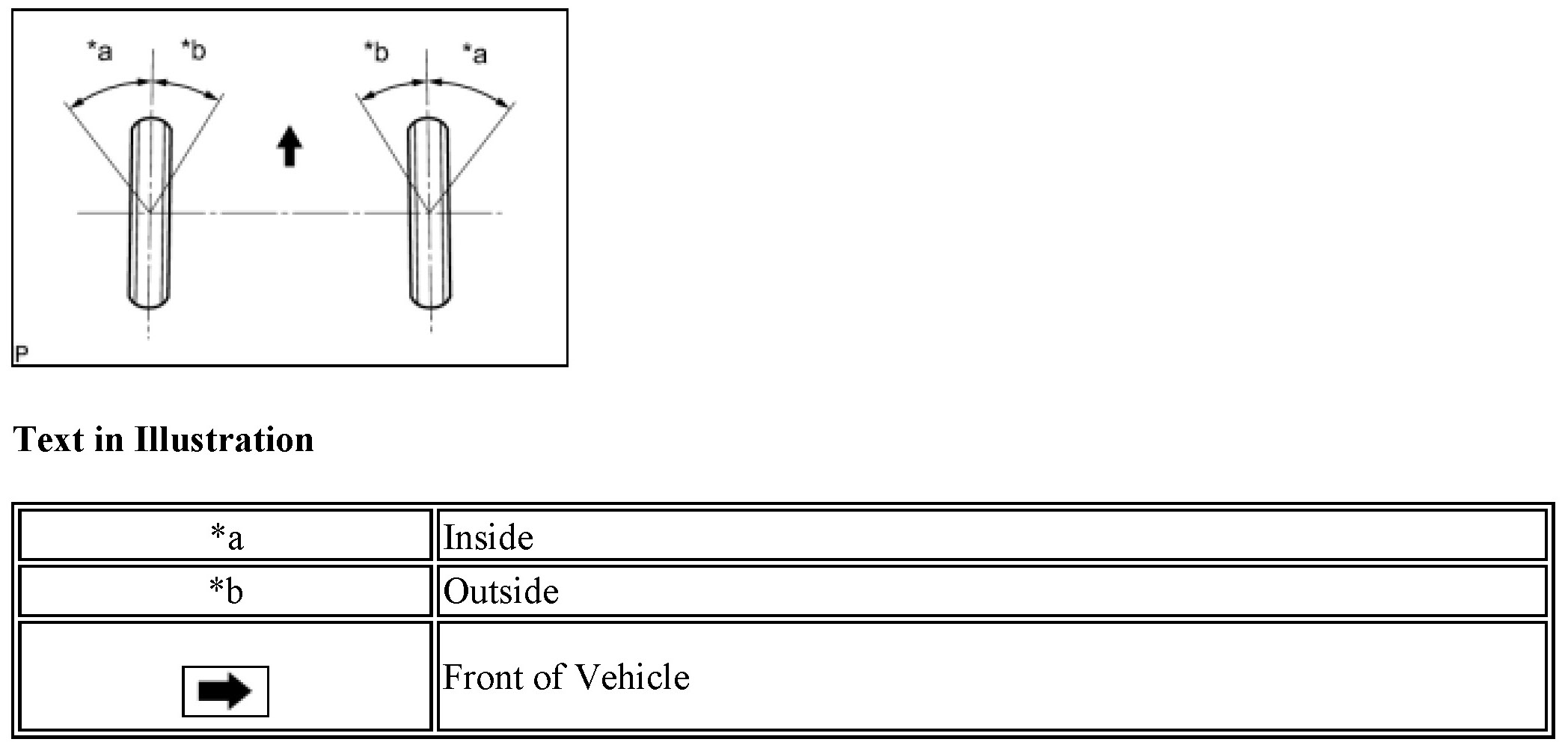 If the toe-in is not within the specified range, inspect the suspension parts and replace if necessary.