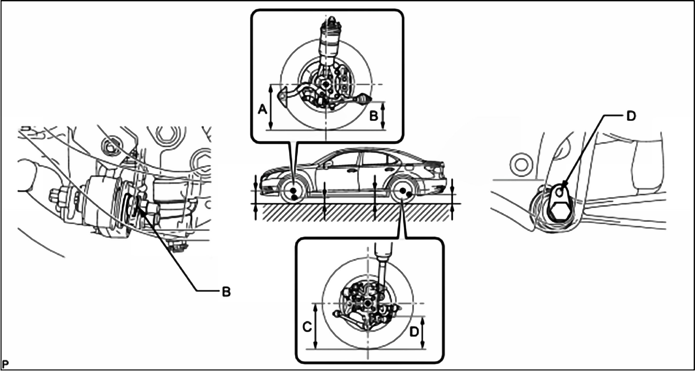 - If the vehicle height is not as specified, adjust the height by pressing down on the vehicle several times to stabilize the suspension.