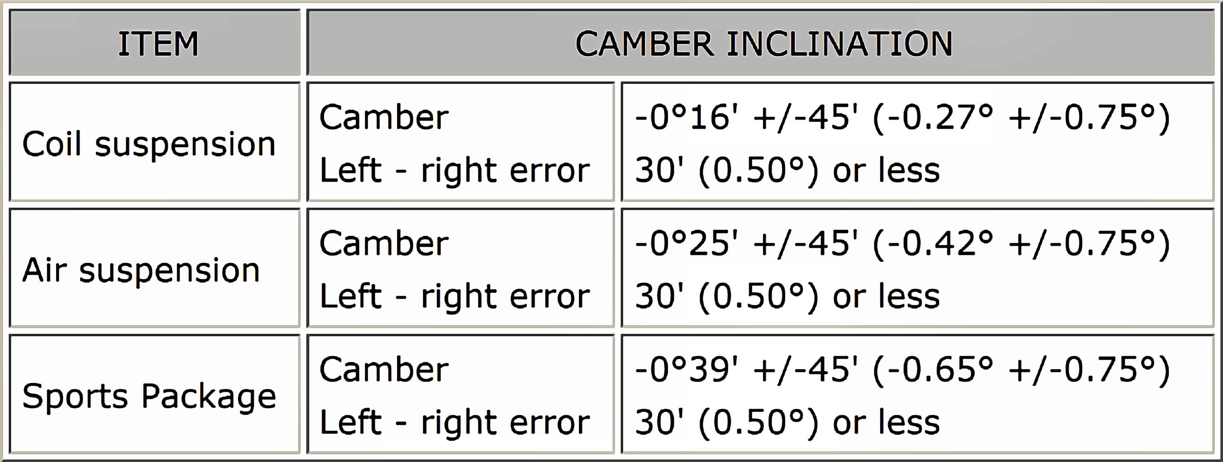 Wheel Alignment Specifications (Unloaded)