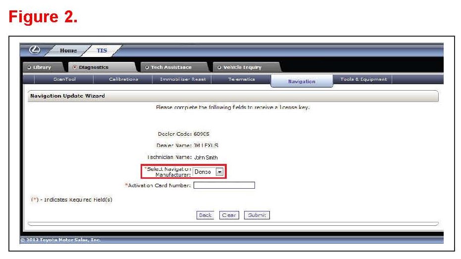 Lexus models equipped with the Premium HDD Navigation (EMV-N) System require a Special Service Tool (SST) USB drive to update the map, points of interest, Gracenote(R), and system software. The SST is used with all vehicles to deliver the update, however a unique Activation Number is required for each vehicle. Activation Numbers are provided in an Activation Card Number (ACN) pamphlet available through the normal parts ordering system. Use the process described in this bulletin to perform the update.