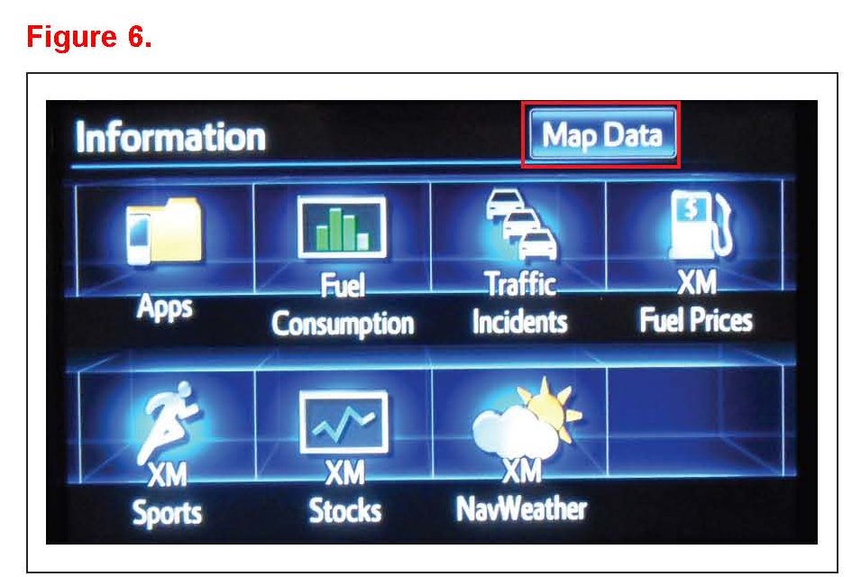 8. Please note the head unit style to determine how to get to the Map Data screen.