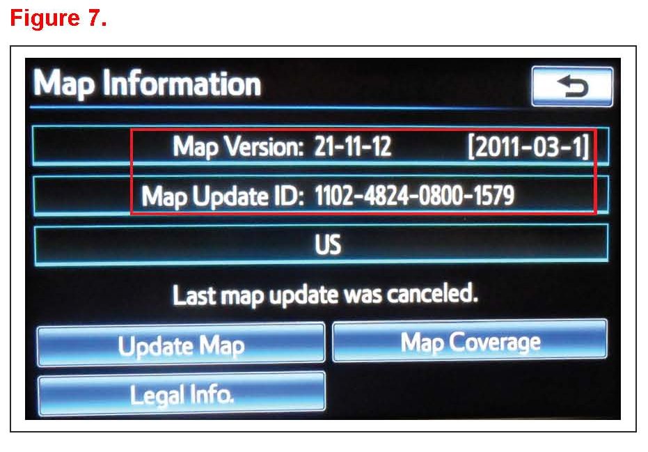 10. Record the Map Version and Map Update ID from the navigation screen.