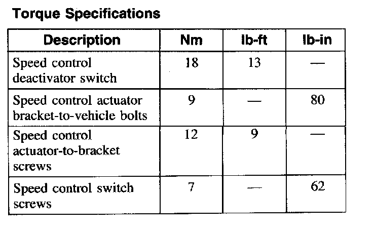 Torque Specifications: