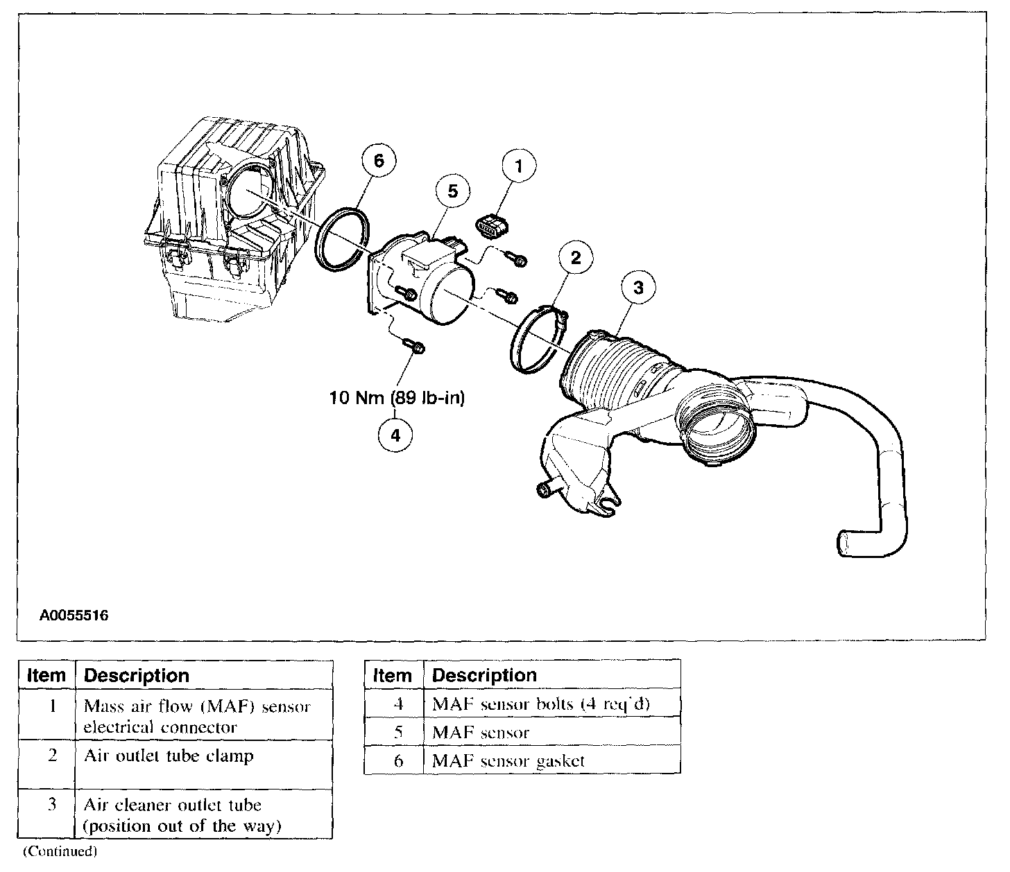 MASS AIR FLOW (MAF) SENSORCAUTION: The MAF sensor electronics module and body are calibrated as a unit and must be serviced as a unit. Do not tamper with the sensing elements located in the air flow bypass of the MAF body.