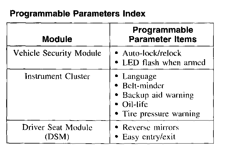 If a module that has been modified using programmable parameters needs to be installed, the PMI procedure will maintain the parameters in their altered state if WDS is able to communicate with the old module during vehicle ID. Otherwise, programmable parameters may be needed to return them to the altered state.