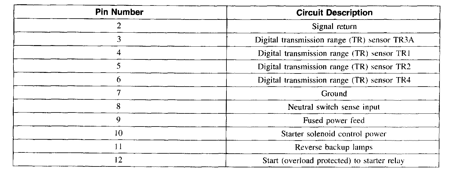 Transmission Position Sensor/Switch: Diagrams