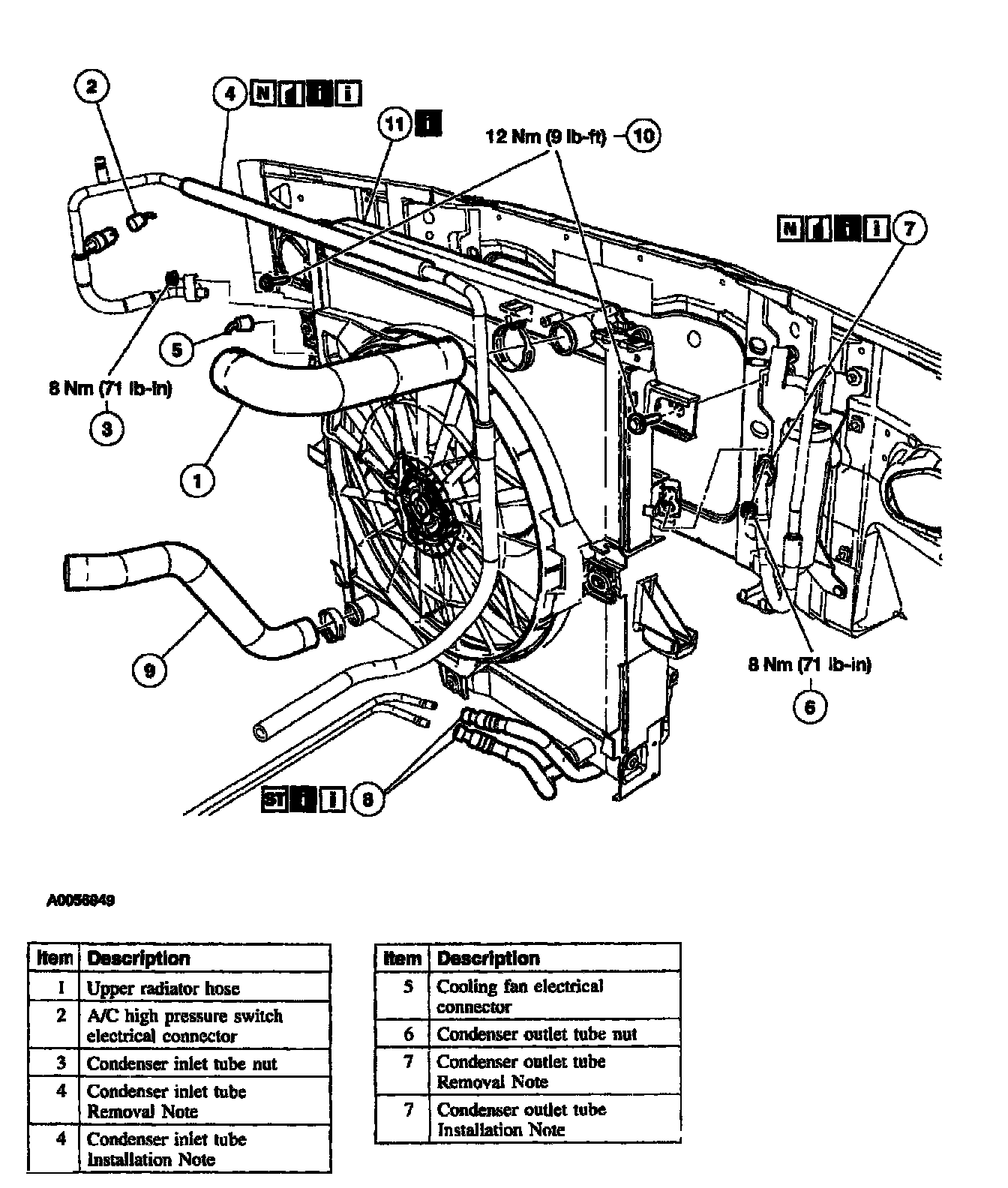 1. Release the condenser inlet tube from the retaining clips and position aside.