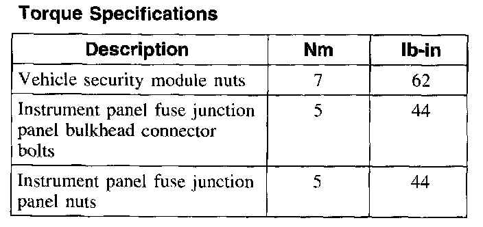 Torque Specifications: