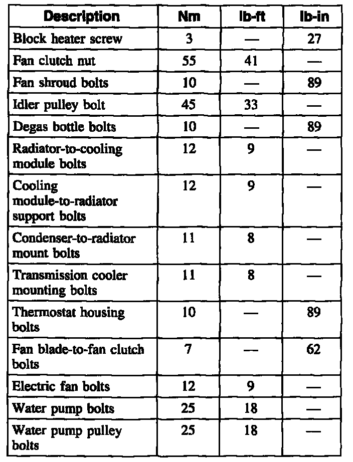 Torque Specifications