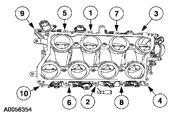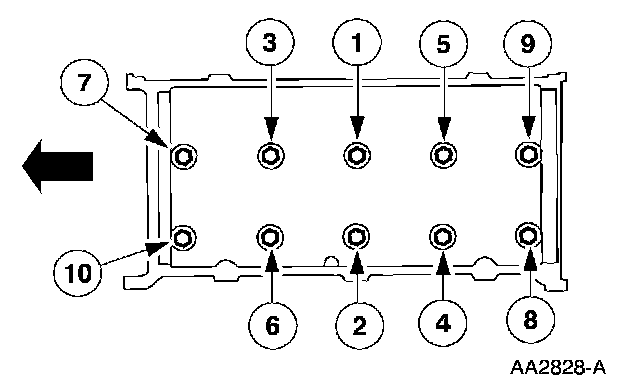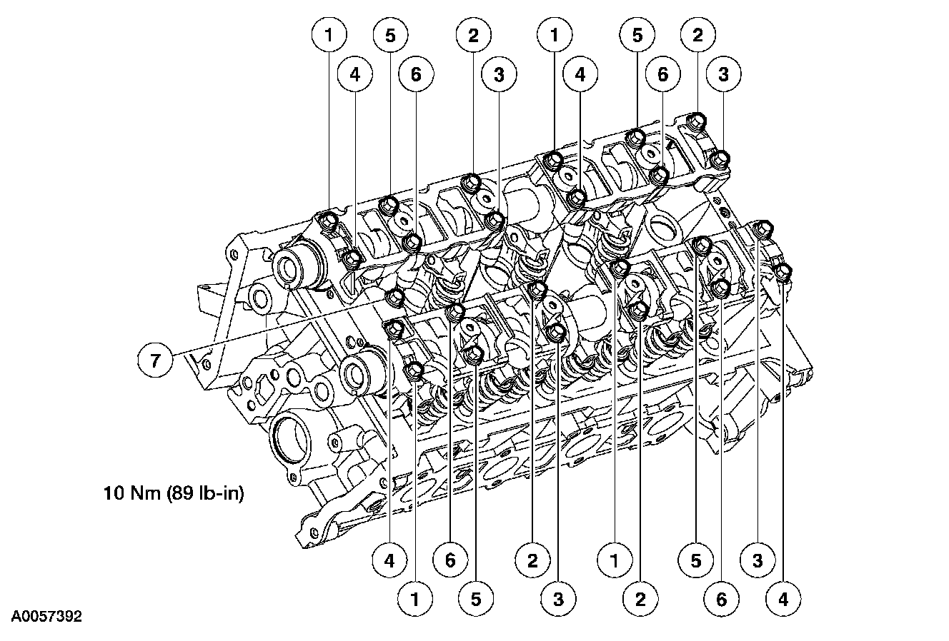 Camshaft bearing caps tighten the fasteners in the sequence shown.