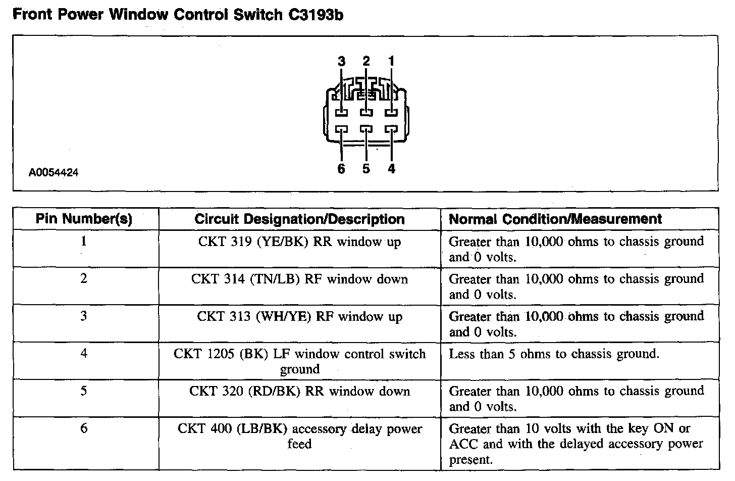 Front Power Window Control Switch C3193b: