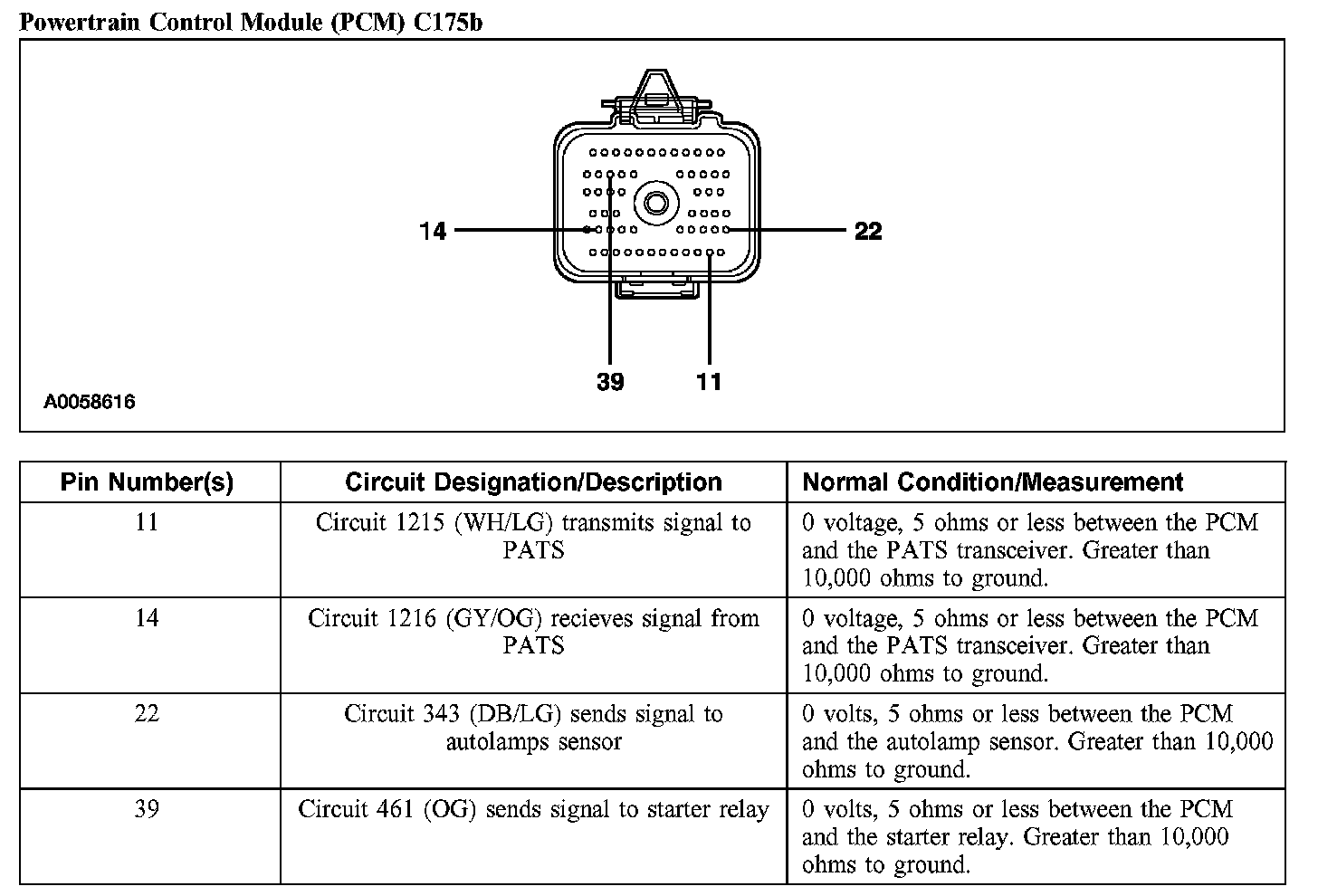 Powertrain Control Module (PCM) C175b: