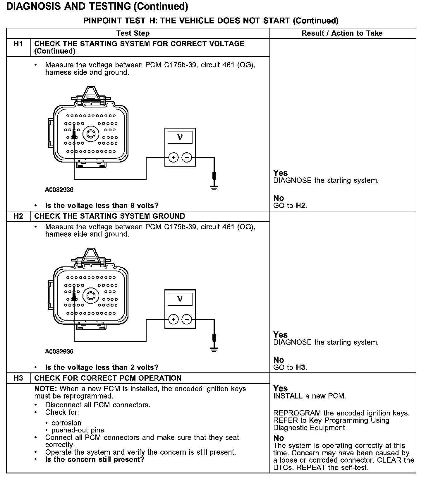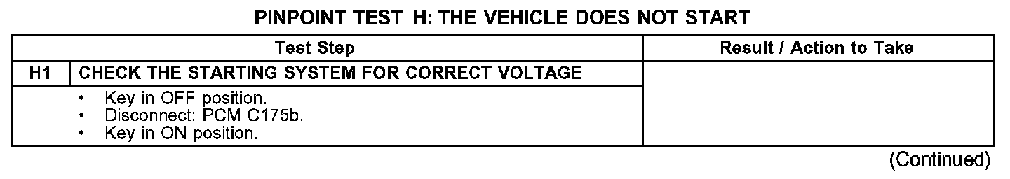 PINPOINT TEST H: THE VEHICLE DOES NOT STARTTest H1: