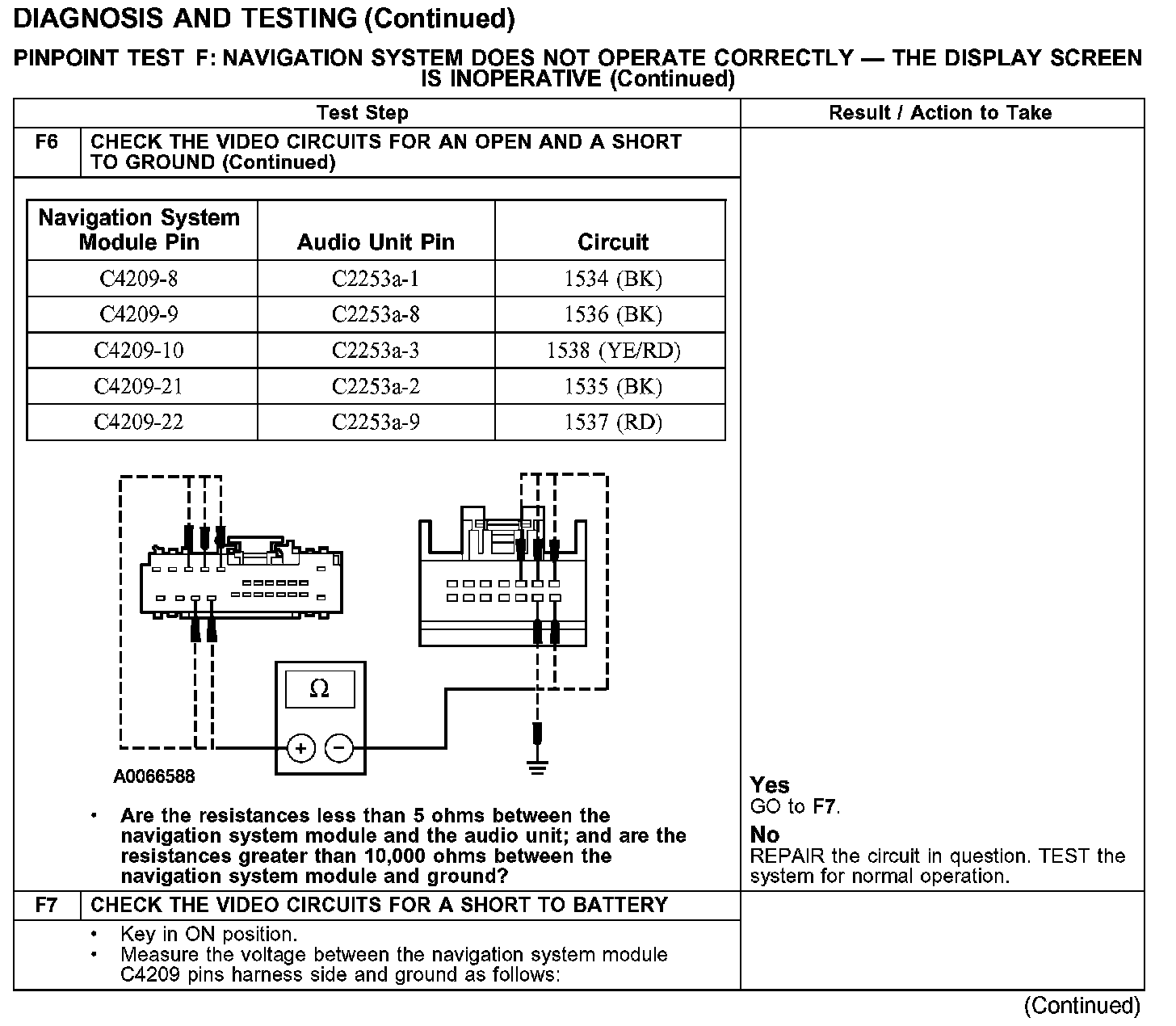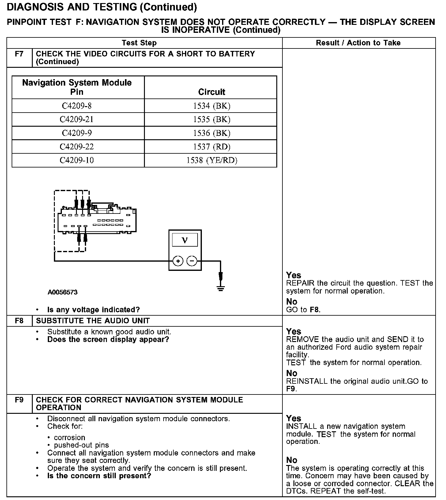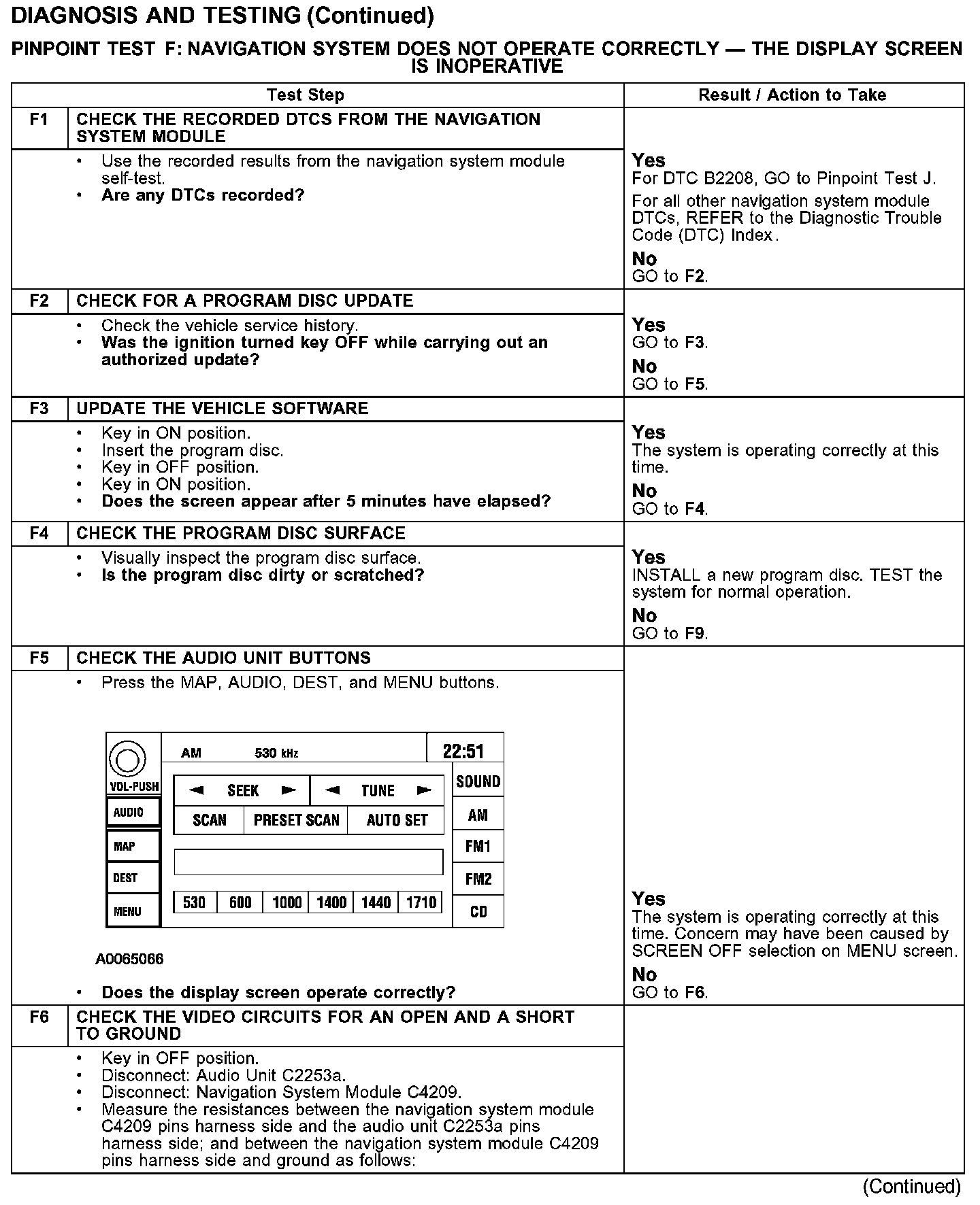 PINPOINT TEST F: NAVIGATION SYSTEM DOES NOT OPERATE CORRECTLY - THE DISPLAY SCREEN IS INOPERATIVETest F1-F6: