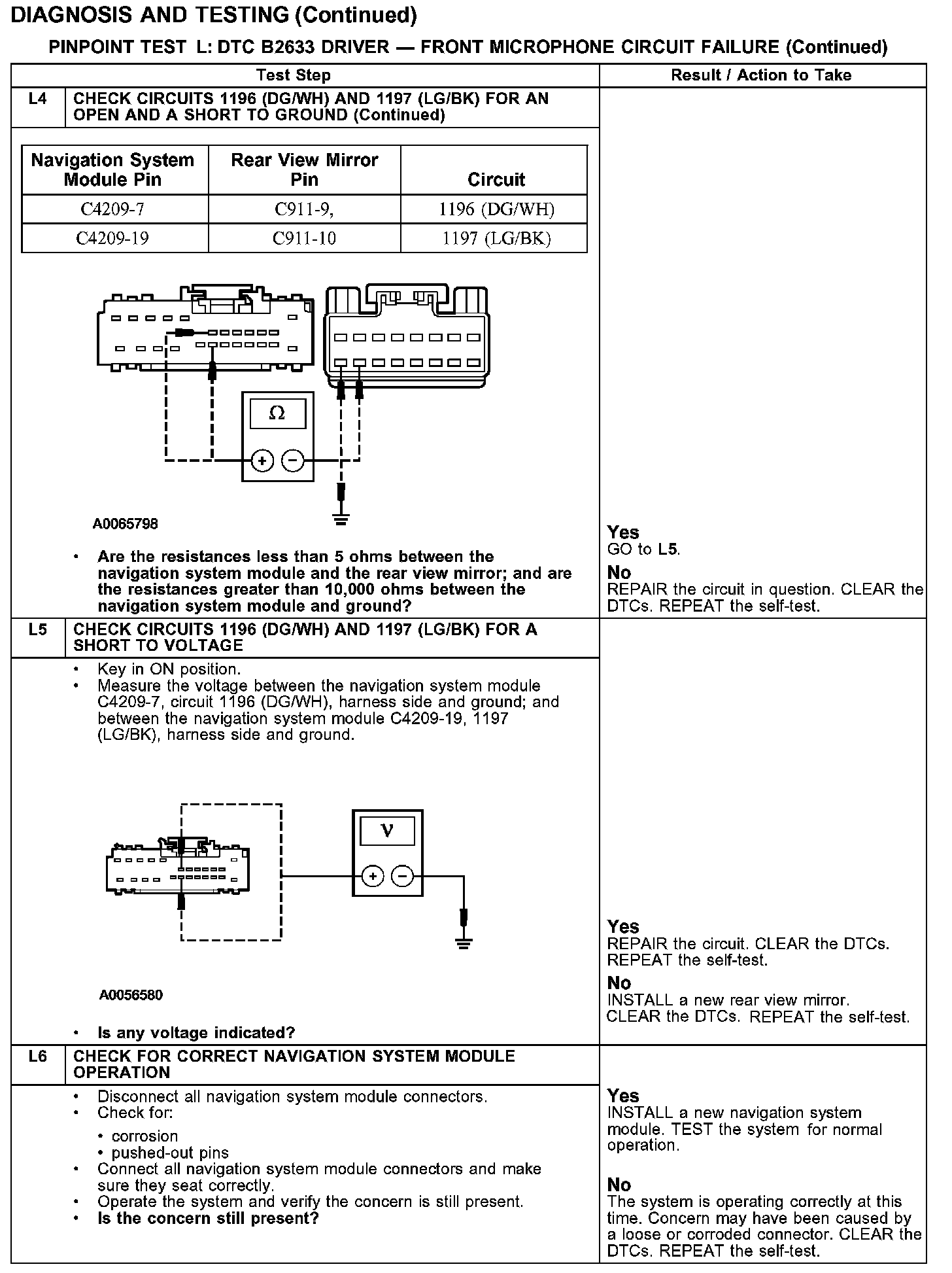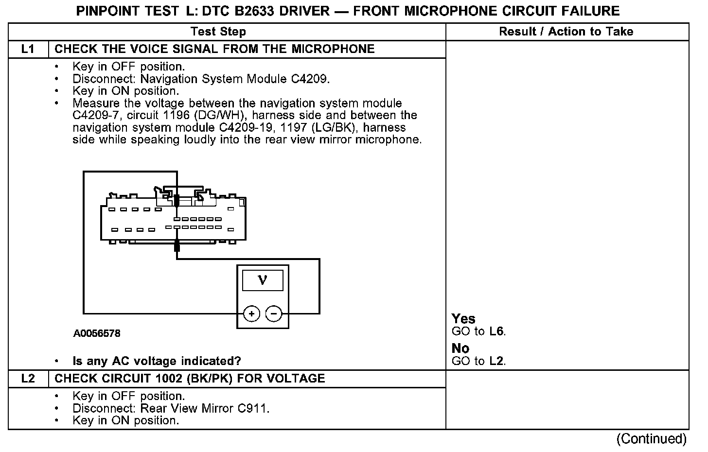PINPOINT TEST L: DTC B2633 DRIVER - FRONT MICROPHONE CIRCUIT FAILURETest L1-L2: