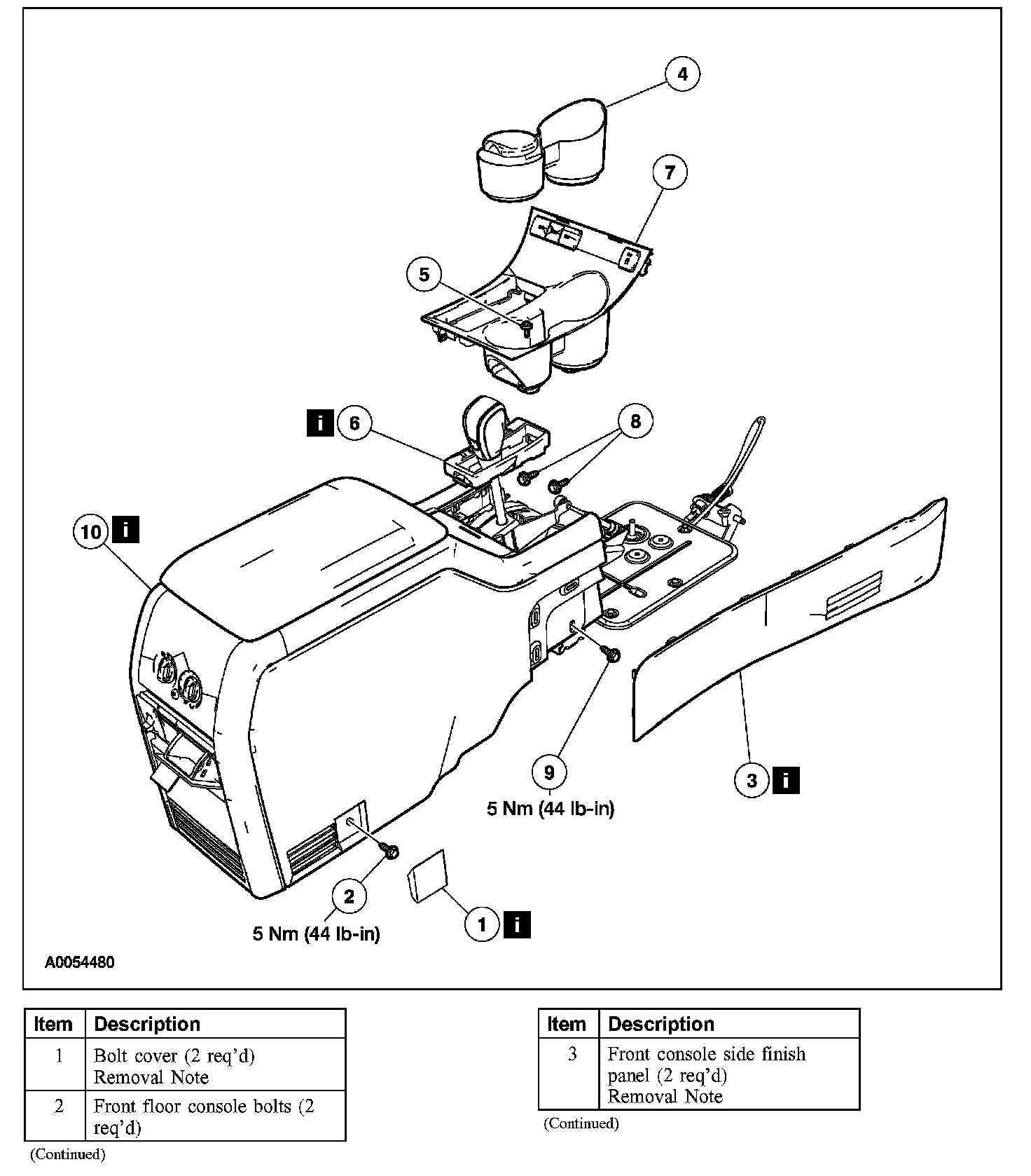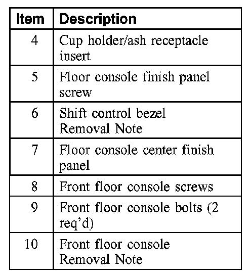 Item 10: Front Floor Console Removal Note