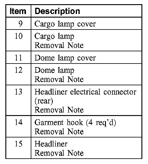 Item 13: Headliner Electrical Connector (Rear) Removal Note