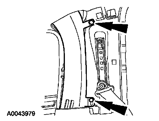 2. NOTE: It is not necessary to remove the lower safety belt anchor bolts to position aside the upper B-, C- and D-pillar trim panels.