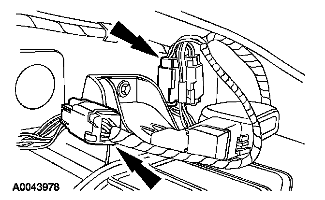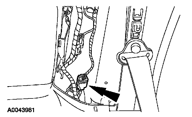 1. Disconnect the electrical connector and the wiring pin-type retainers on the A-pillar.