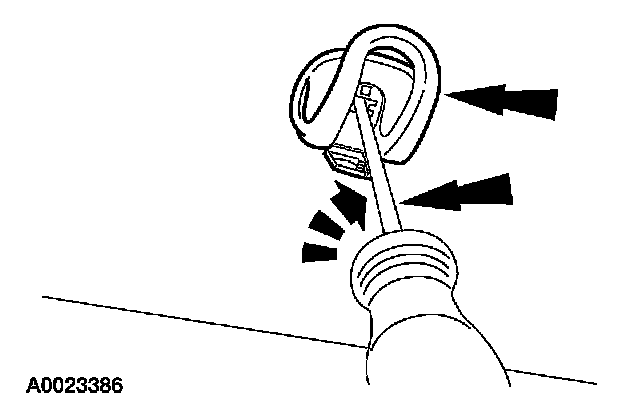 - Open the access cover and insert a 3/16-inch flat-blade screwdriver into the garment hanger slot and turn 90 degrees so that it engages the plastic component slot. This spreads the steel attachment clip wings to allow the plastic component to disengage. The clip remains engaged in the sheet metal.