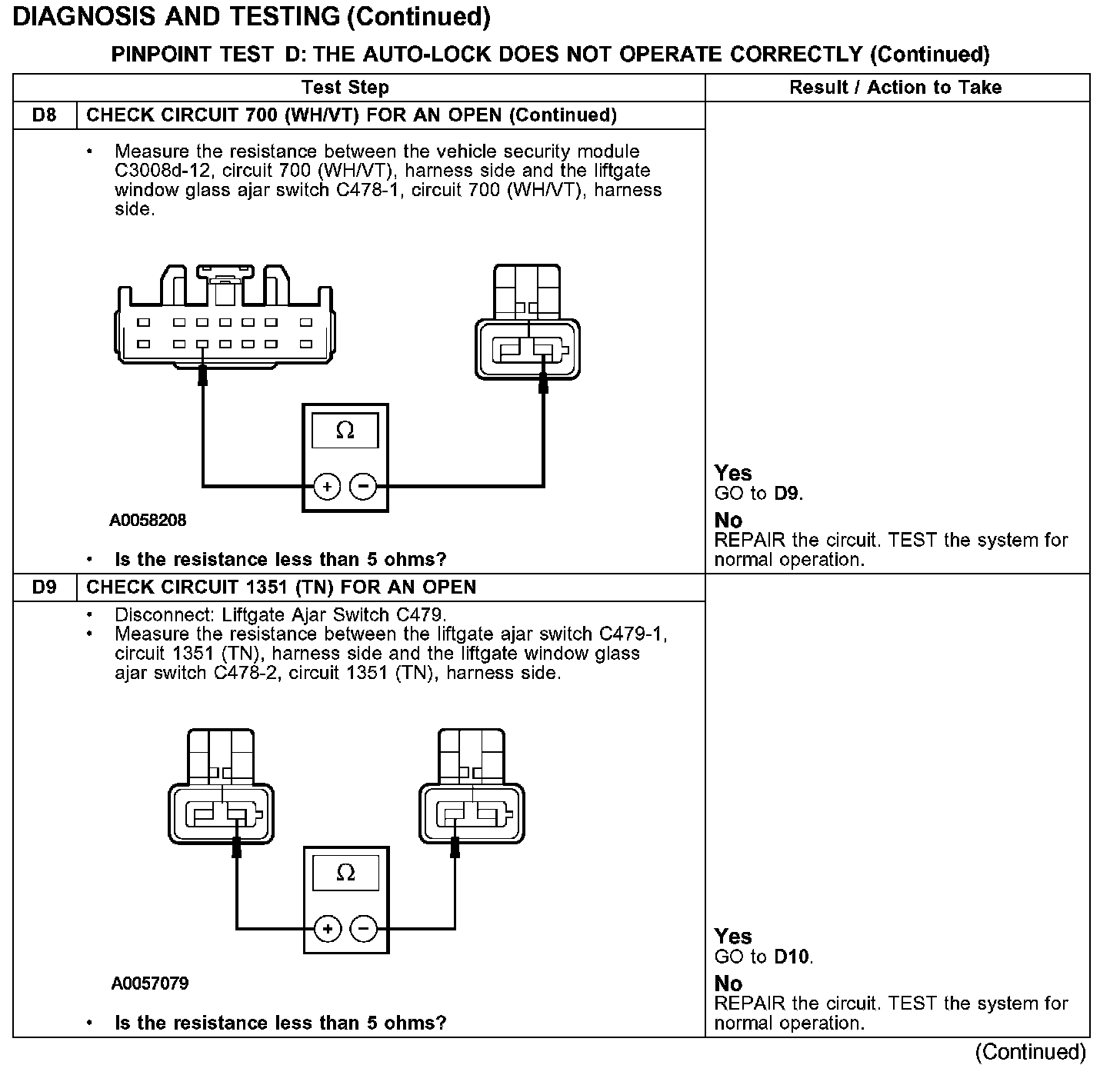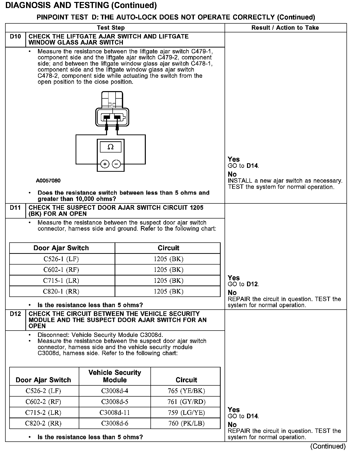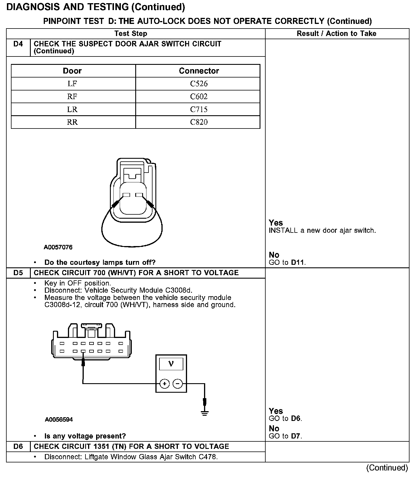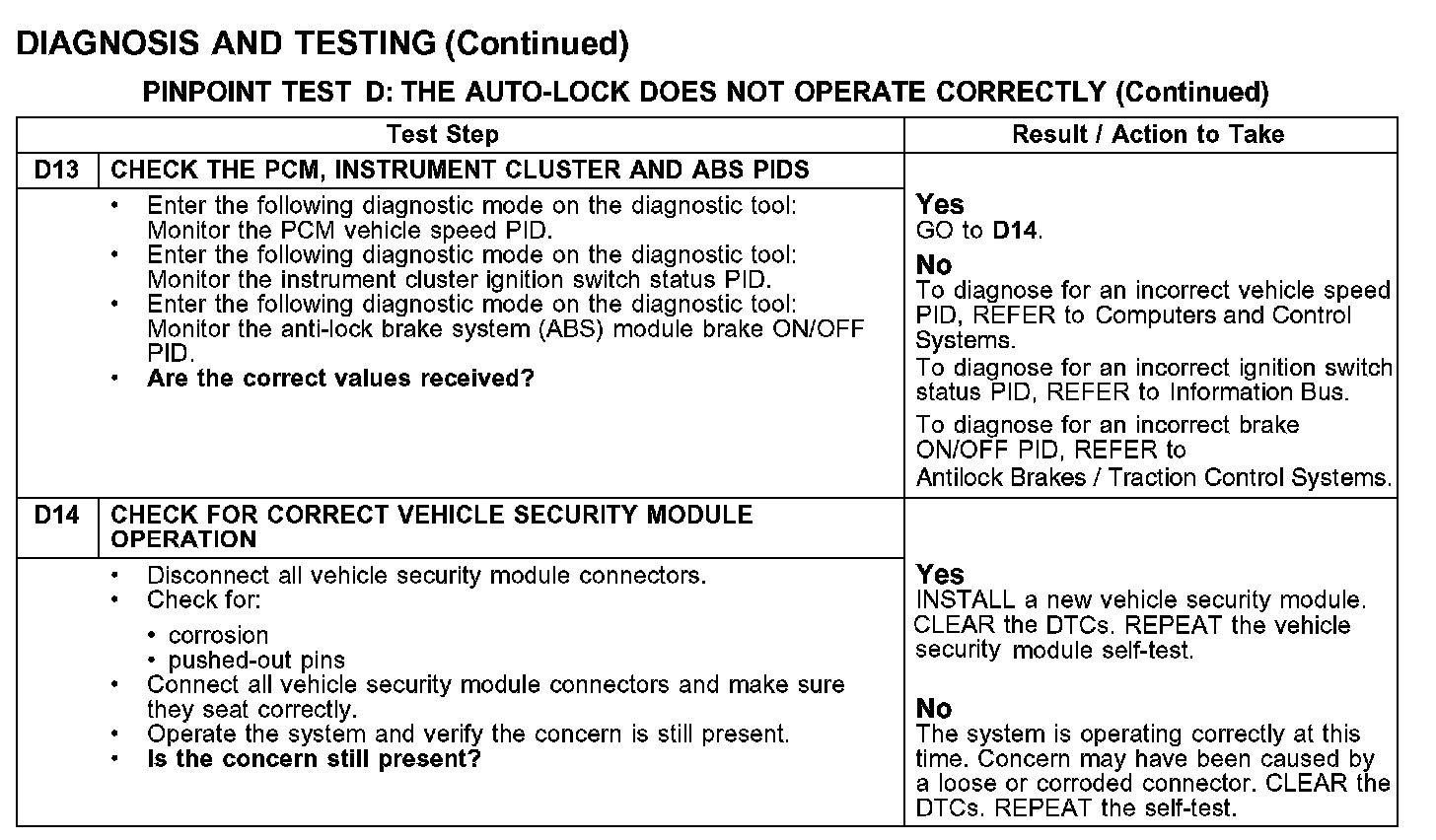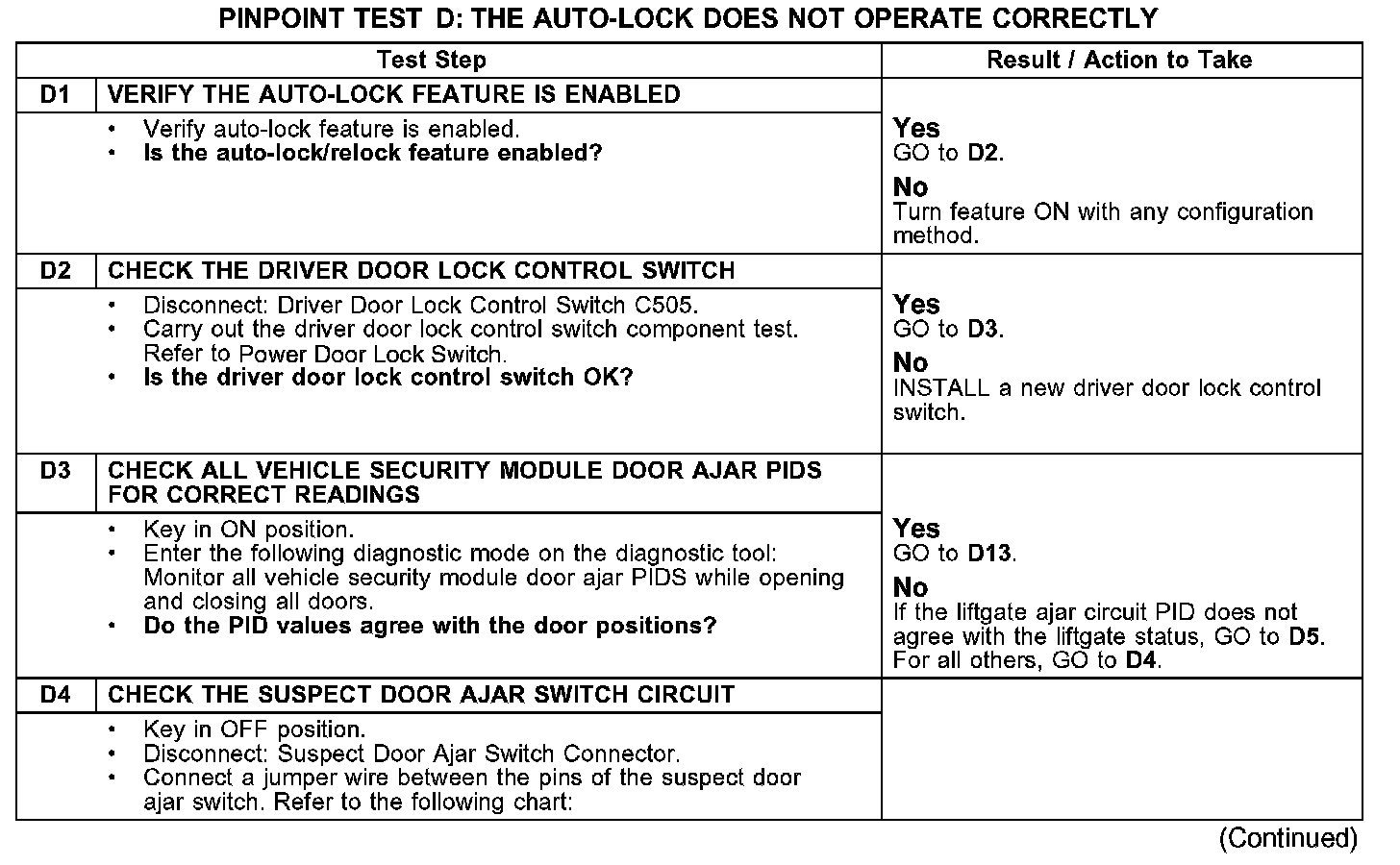 PINPOINT TEST D: THE AUTO-LOCK DOES NOT OPERATE CORRECTLYTest D1-D4: