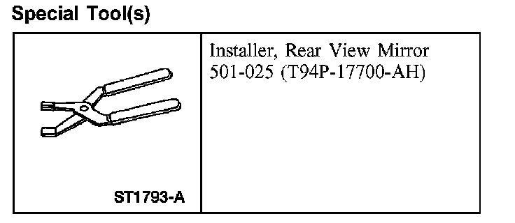 1. For vehicles equipped with manual interior mirror, place the interior mirror on the windshield bracket. Using the special tool, press the mirror in place until fully seated.