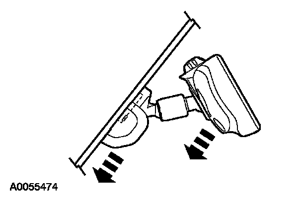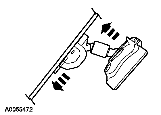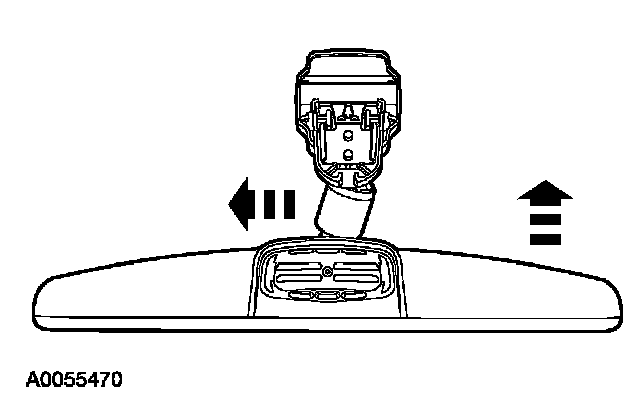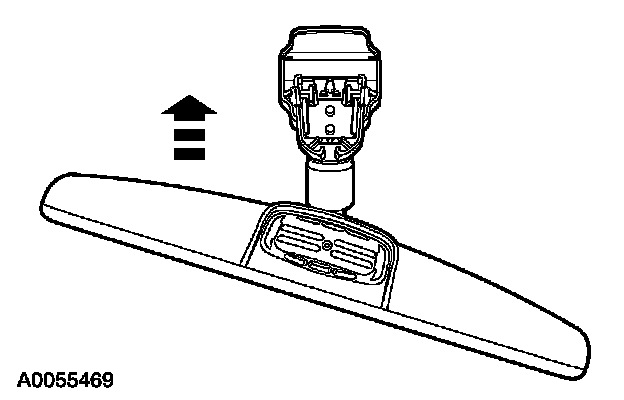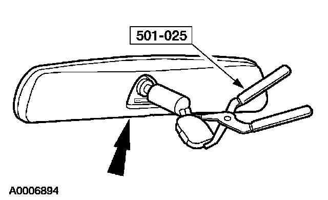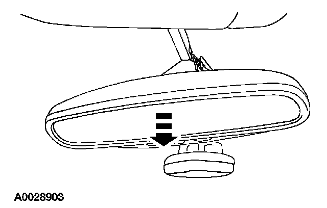 1. For vehicles equipped with manual interior mirror, position the mirror in the full down position. Grasp the mirror and rotate in a downward direction and toward the windshield until released from the mirror windshield bracket.