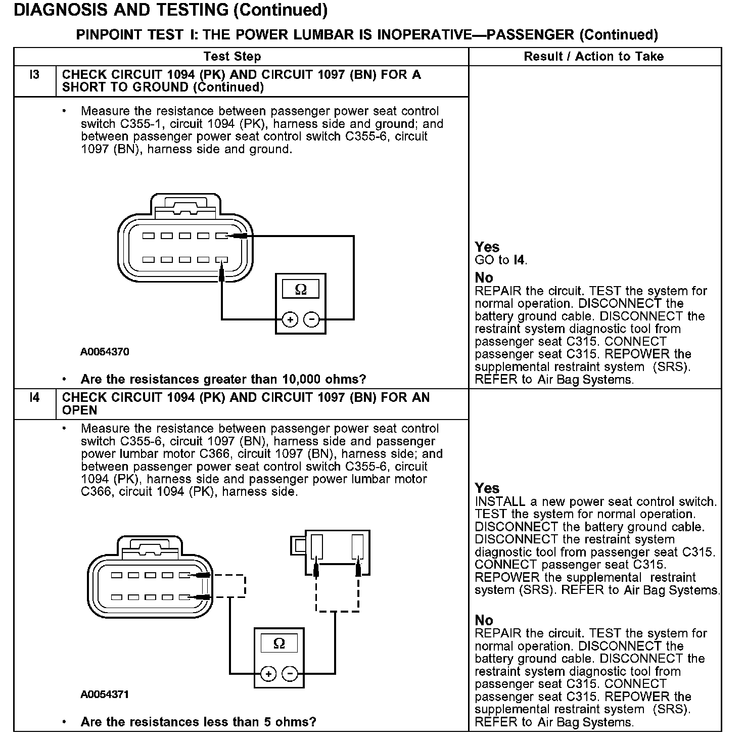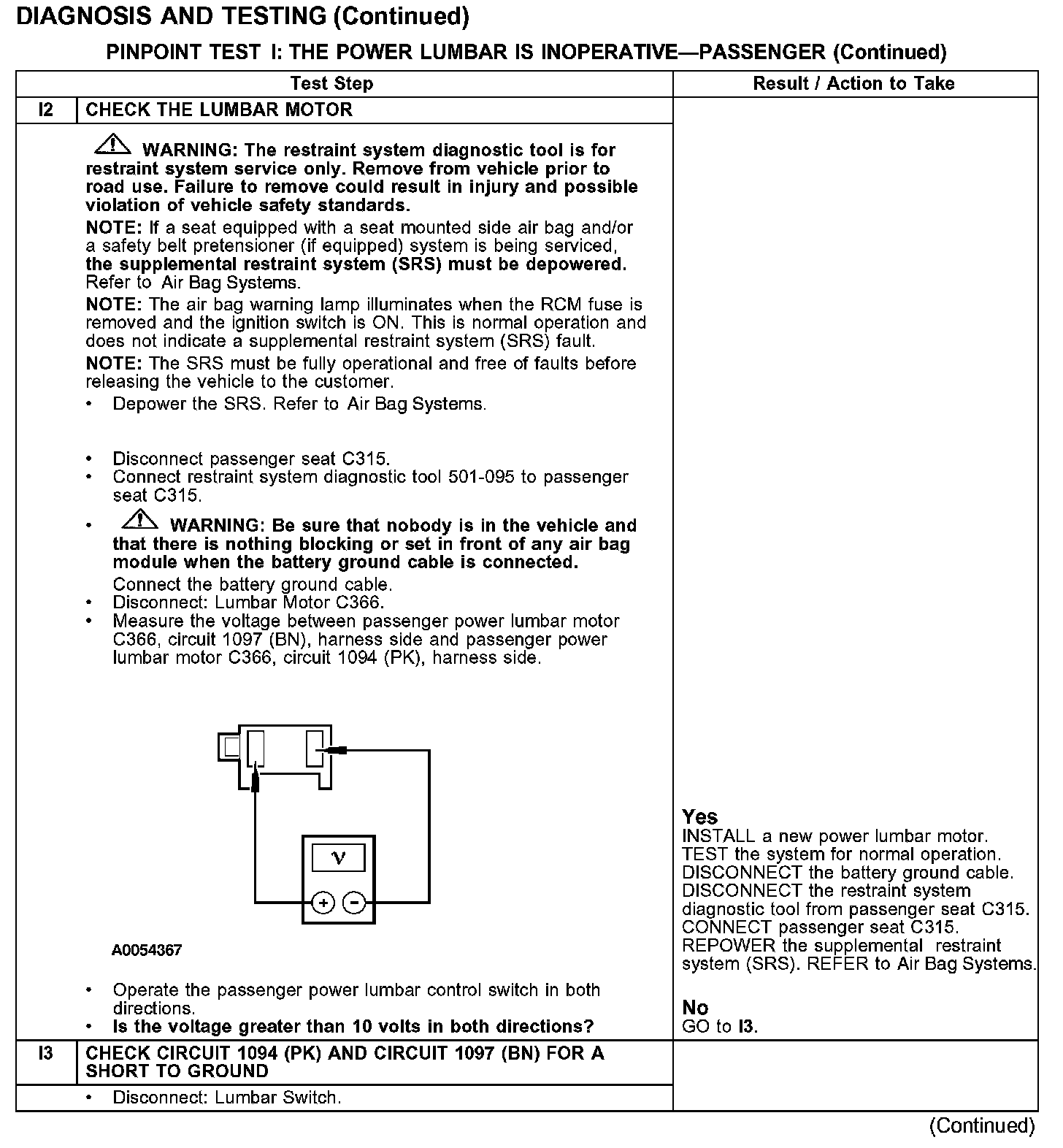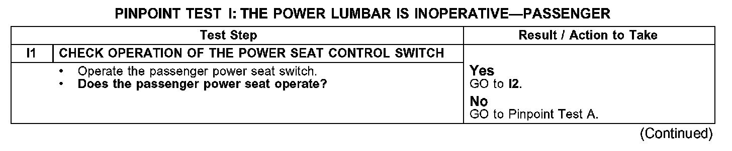 PINPOINT TEST I: THE POWER LUMBAR IS INOPERATIVE - PASSENGERTest I1: