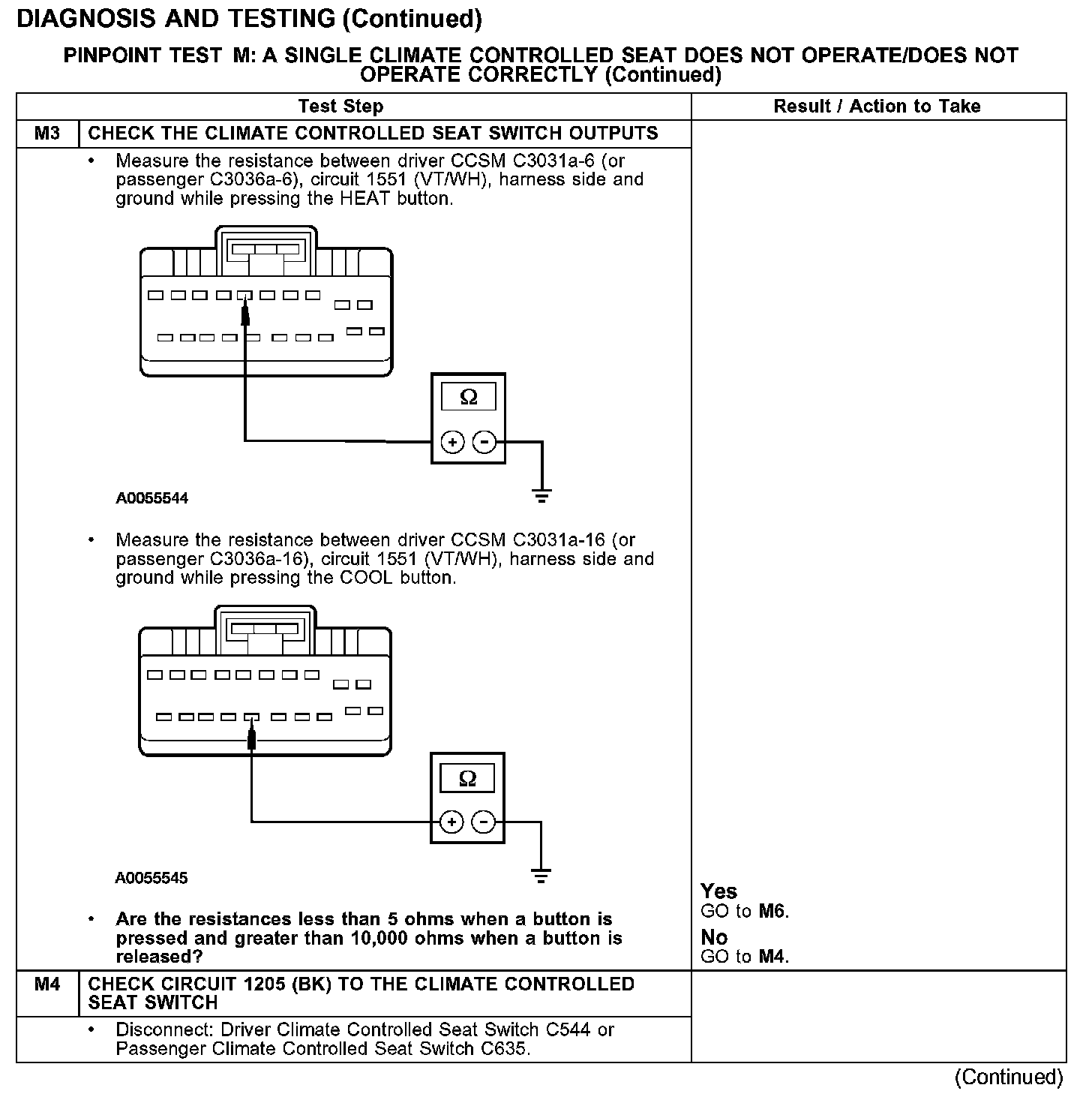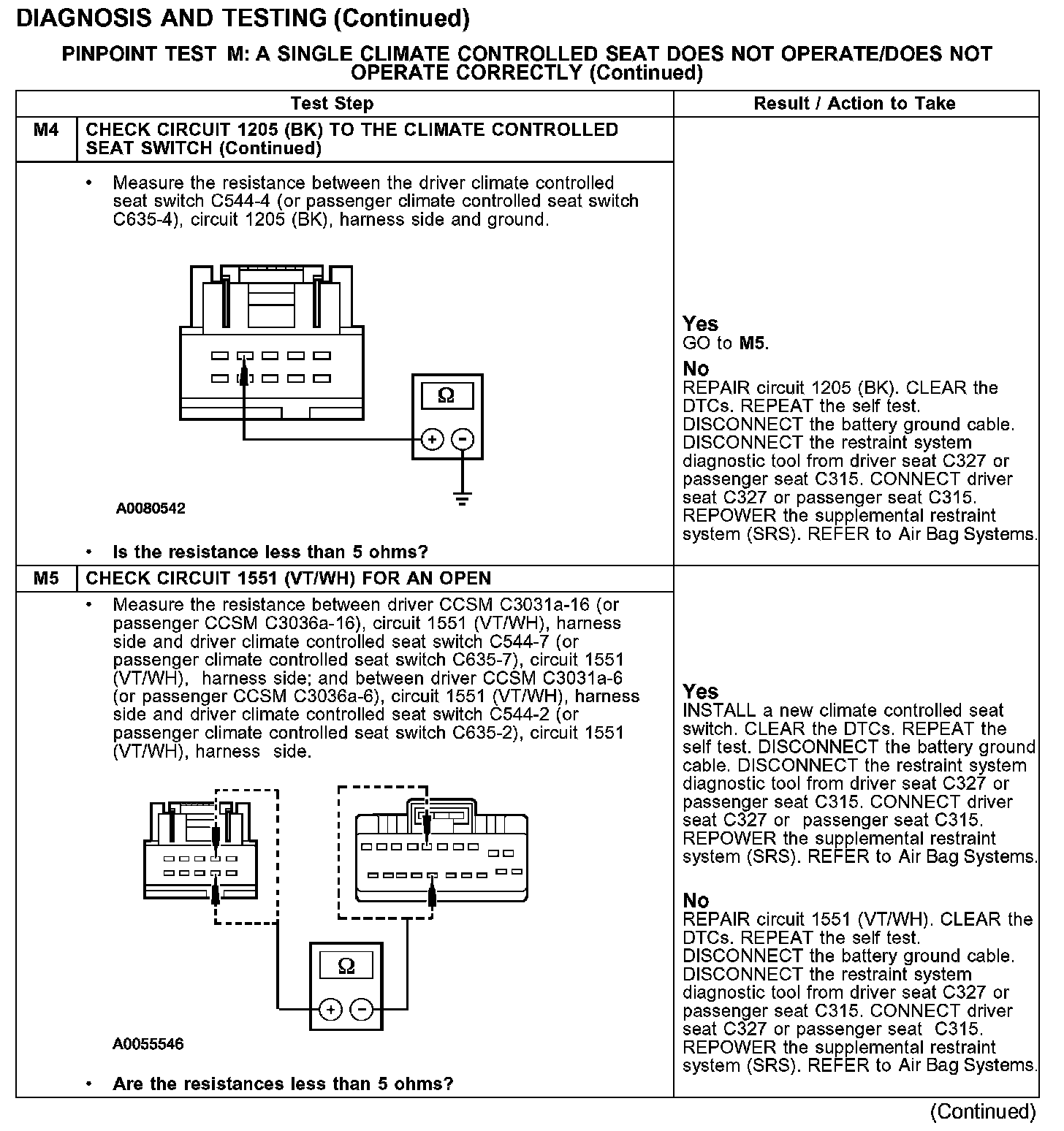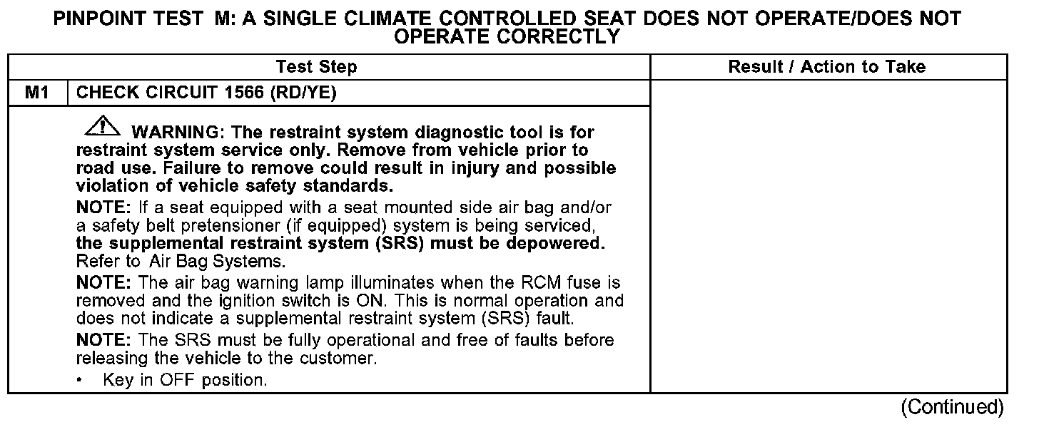 PINPOINT TEST M: A SINGLE CLIMATE CONTROLLED SEAT DOES NOT OPERATE/DOES NOT OPERATE CORRECTLYTest M1: