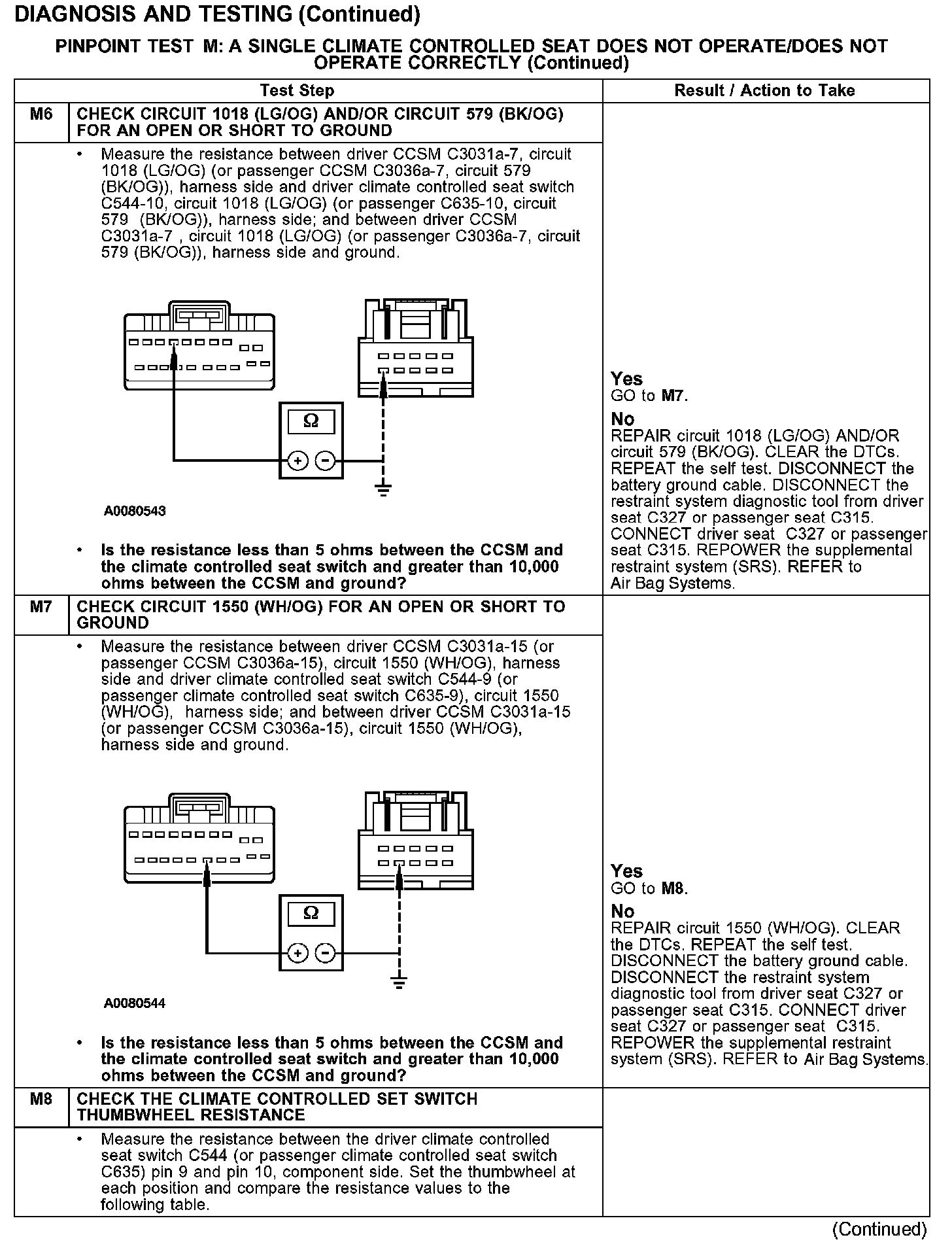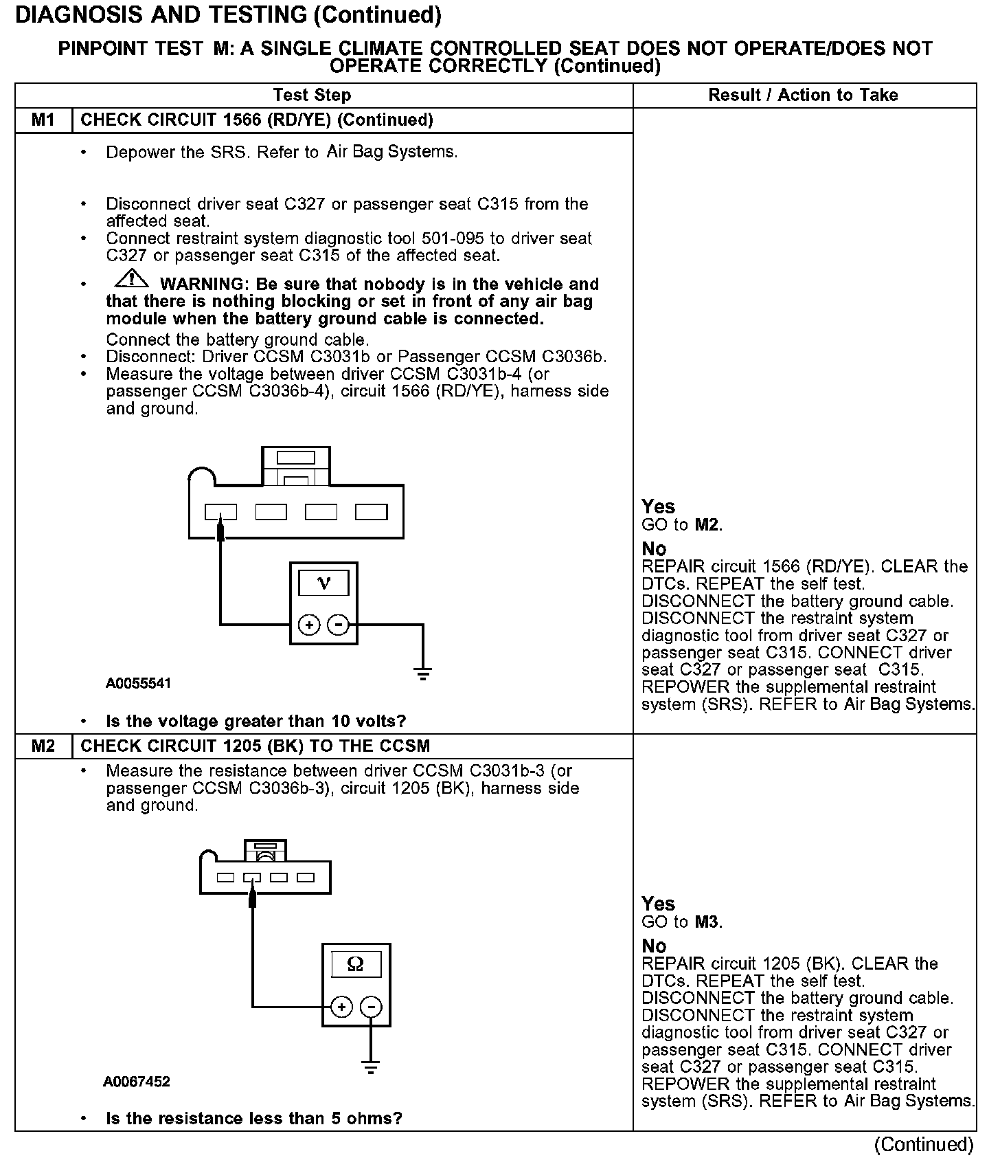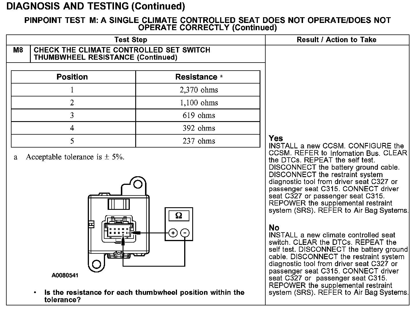PINPOINT TEST M: A SINGLE CLIMATE CONTROLLED SEAT DOES NOT OPERATE/DOES NOT OPERATE CORRECTLYTest M1: