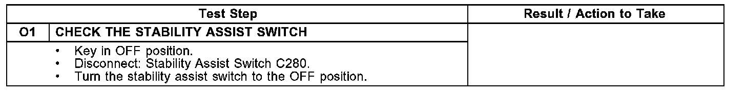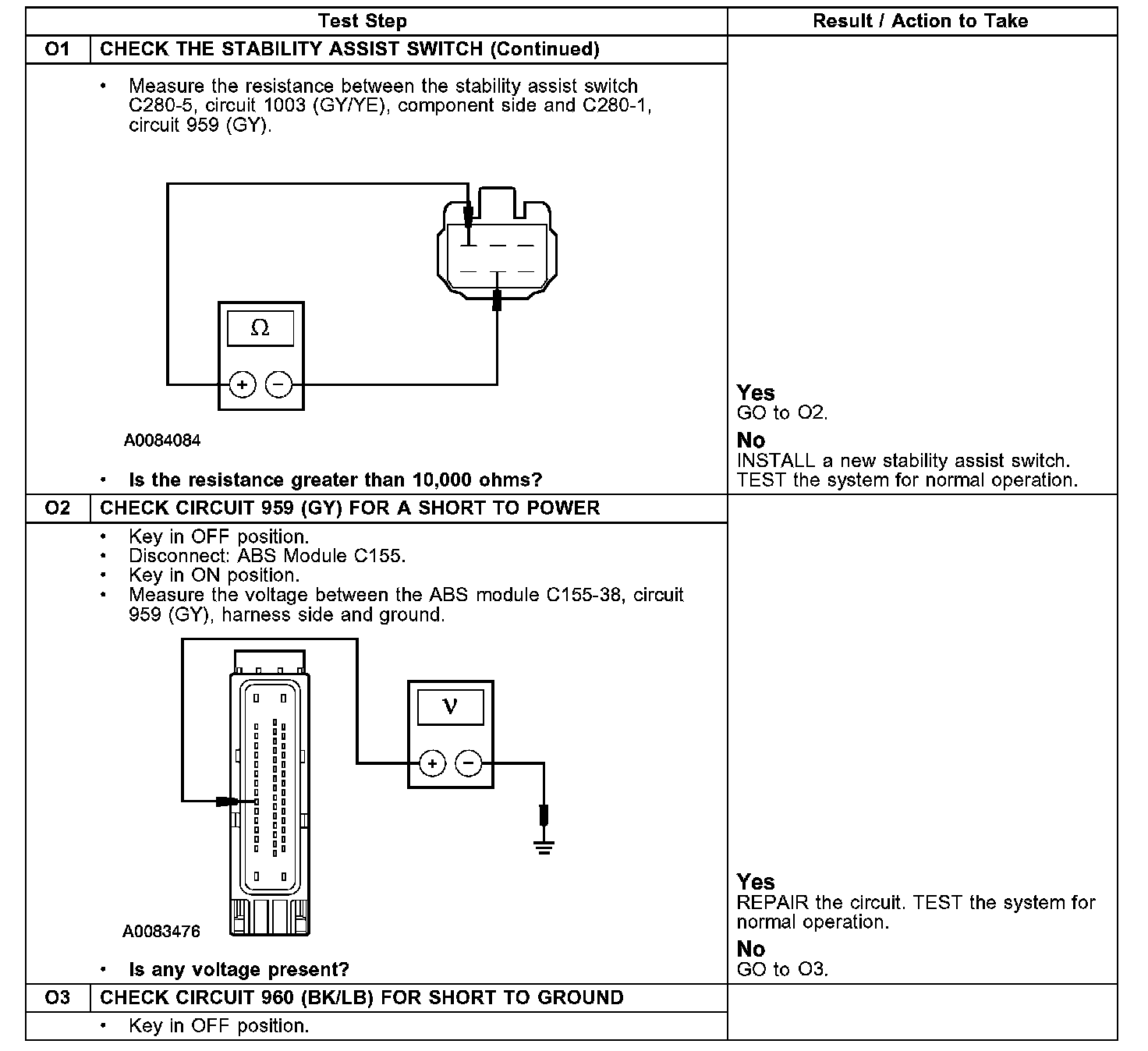 Pinpoint Test O: Stability Assist Cannot Be DisabledTest O1 (Continued):