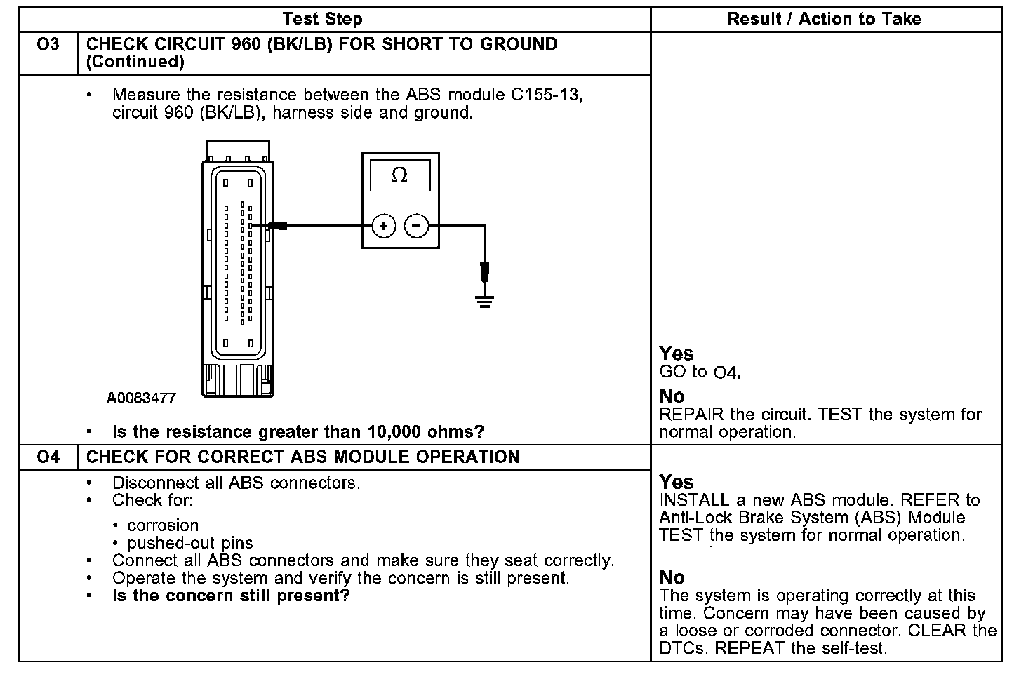 Voltage is supplied to the stability assist switch through circuit 1003 (GY/YE). The signal from the stability assist switch is sent to the ABS module through circuit 959 (GY).