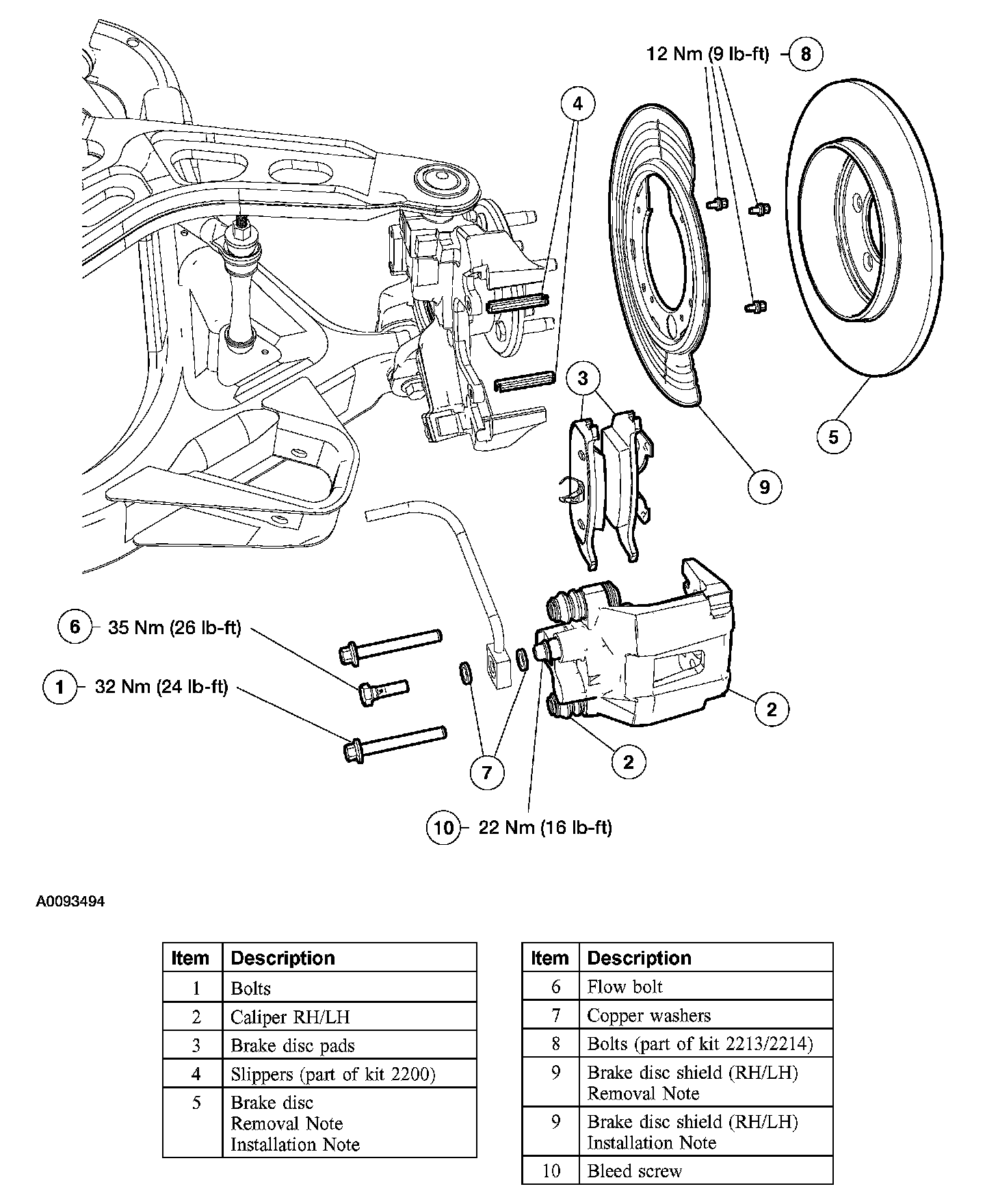 Item 9: Brake Disc Shield Installation Note