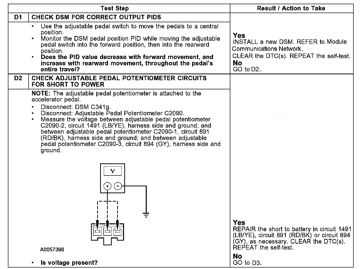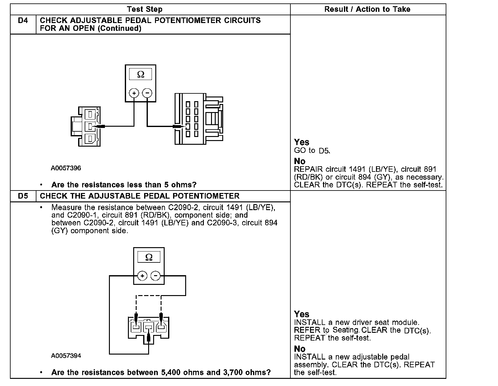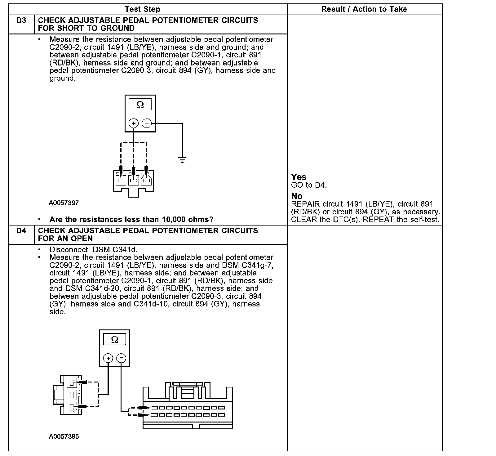 ^ adjustable pedal motor feedback circuits 1491 (LB/YE), circuit 891 (RD/BK), or circuit 894 (GY)